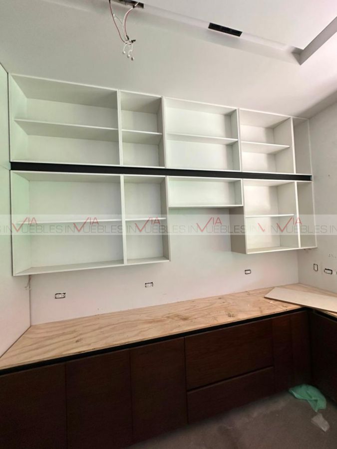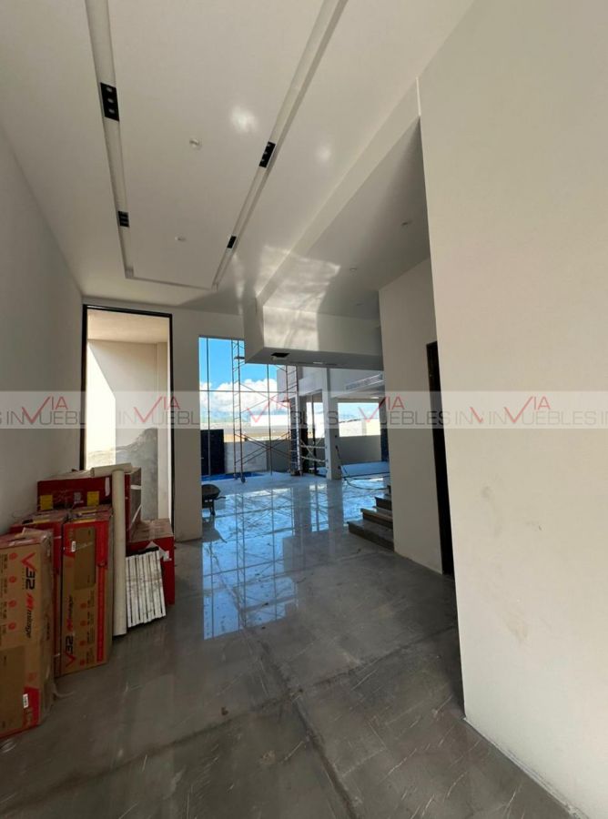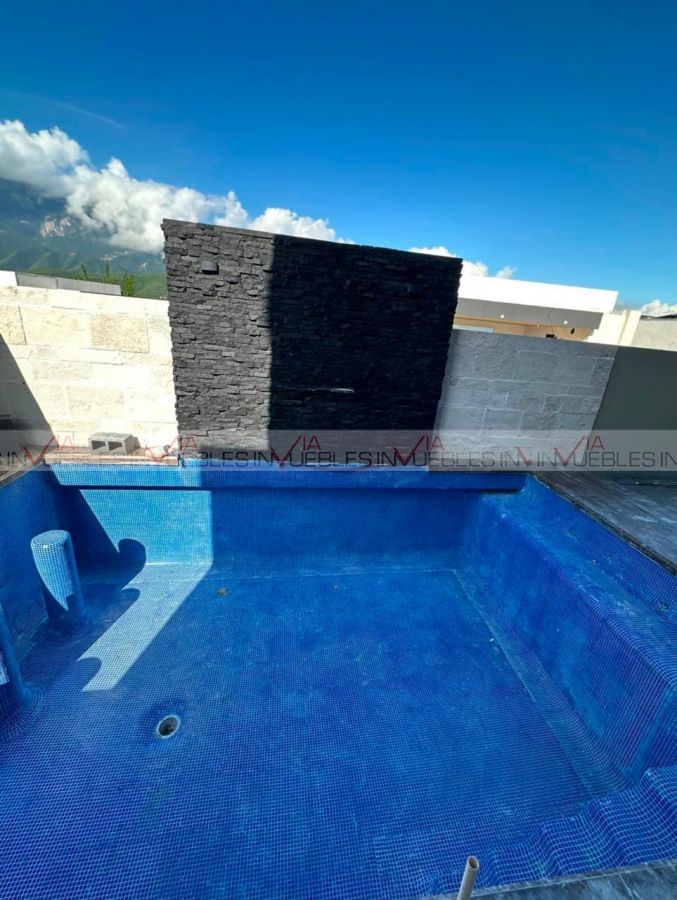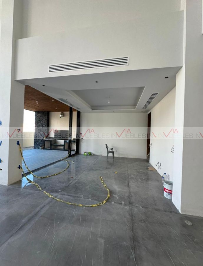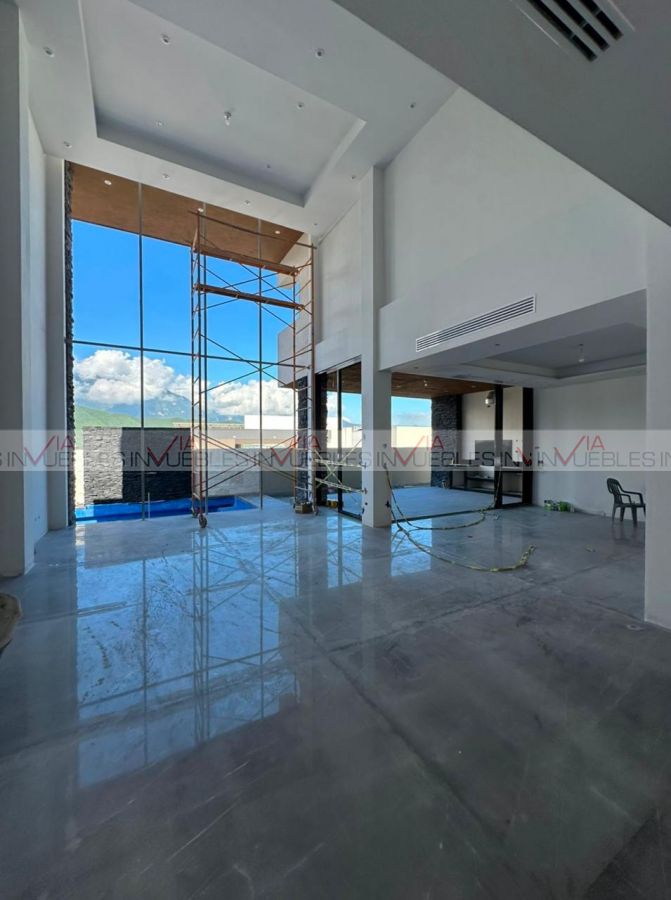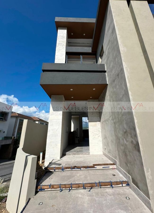 Casa en venta en Residencial La Herradura. Se entrega llave en mano en noviembre del 2024. Terreno 500 m². Construcción 837 m² más 92 m² de terraza sin techar. Esta residencia cuenta con las siguientes áreas: Planta baja: cochera para cuatro autos, acceso principal y doble altura en sala y bar, comedor, cocina integral con family room, despensa, baño completo de visitas, sala de cine/estudio/oficina con opción a cuarta recámara, terraza techada con barra cubierta de granito con tarja y preparación de asador, jardín exterior con baño completo, pasillo de servicio, lavandería, cuarto de servicio con baño completo, boiler, alberca y preparación de elevador. Planta alta: recámara principal con balcón, baño completo con hidromasaje y walk-in closet de 2 niveles, 3 recámaras secundarias con balcón, baño completo y walk-in closet cada una, estancia de televisión, closet de blancos y sink. Azotea: cubo, escaleras y elevador para acceso a azotea, terraza techada, baño completo, área social exterior, barra cubierta de granito con tarja y preparación para asador y refrigerador, bodega y área de máquinas (climas, paneles, voz y datos), área social interior con medio baño.