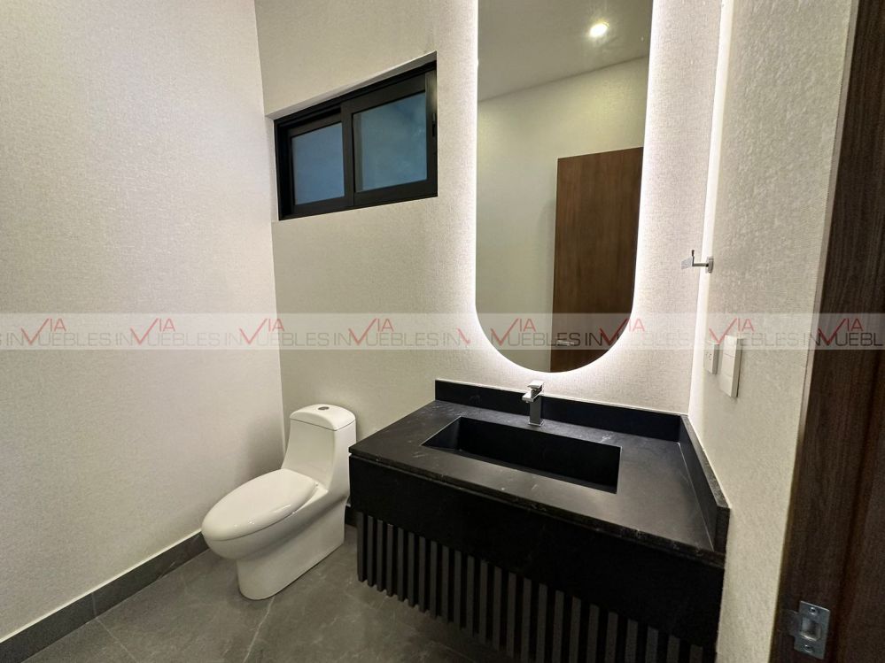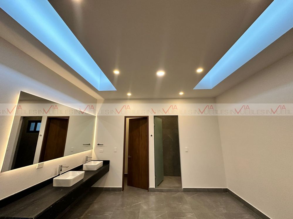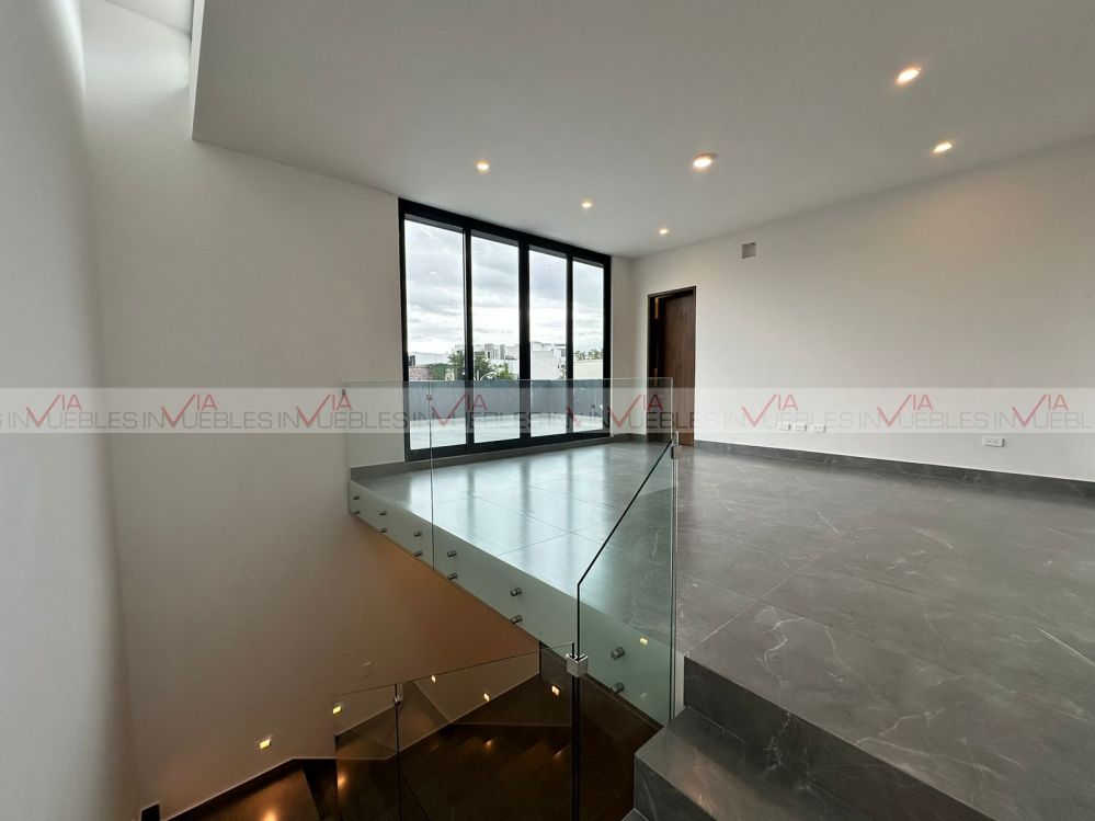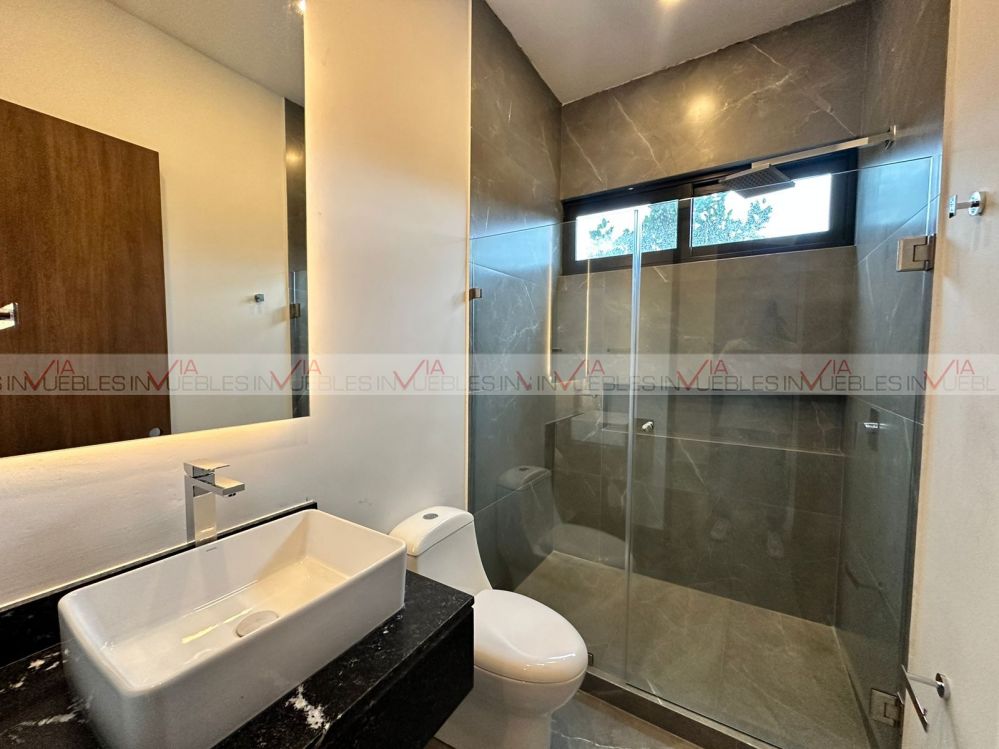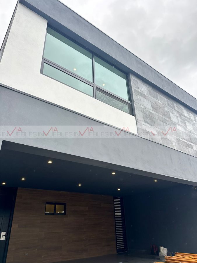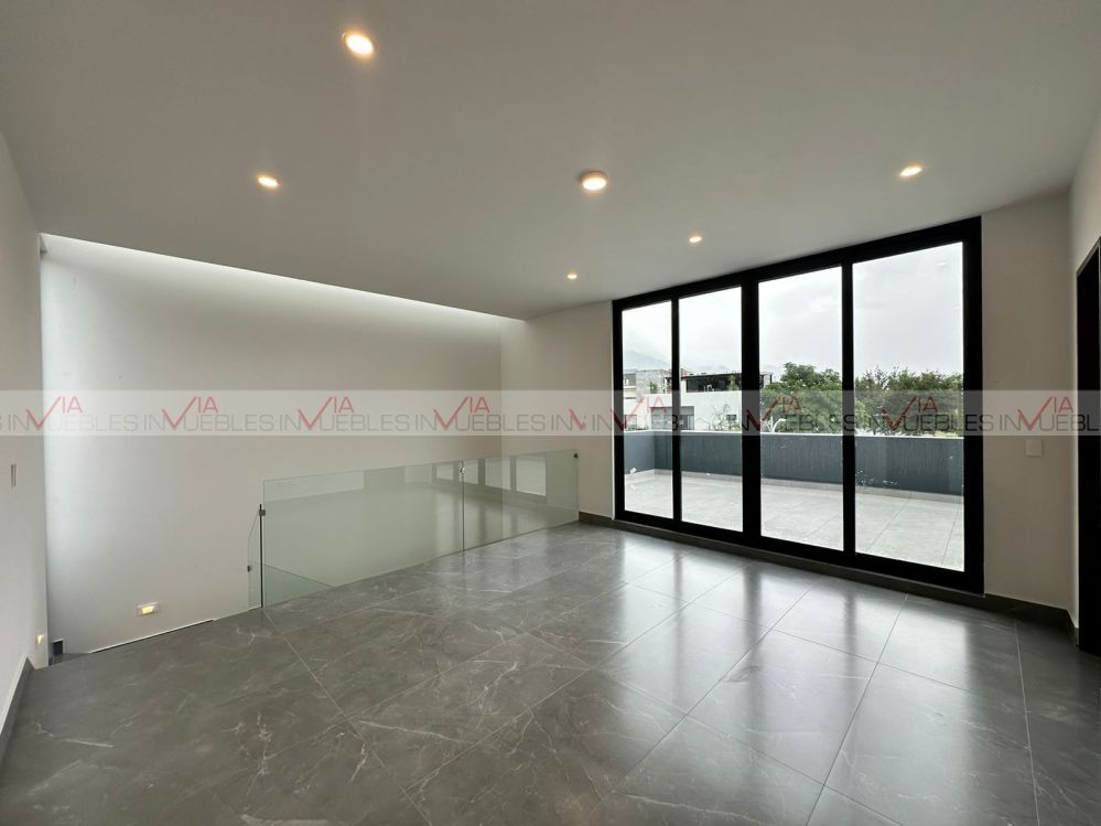 Hermosa casa en *VENTA* ubicada en Mítica Residencial, Santiago, NL. Cuenta con 200 metros cuadrados de terreno y 346 de construcción + 85 de jardín. La casa tiene una altura libre de 3 metros y cuenta con estacionamiento para 3 carros, 3 recámaras + cuarto de servicio. Fraccionamiento privado cuenta con caseta de vigilancia y seguridad 24/7. En las fotos se puede ver el render de la casa y su distribución por piso, así como el avance actual de la propiedad. NIVEL 1 - Area abierta de cocina, comedor, sala, despensa walk-in, patio, baño de visitas, cochera para 3 carros, closet triques NIVEL 2 - Recamara principal con walk-in closet, lavabo doble, regadera y sanitario independientes 2 recamaras secundarias con walk-in closet y baño completo independiente, estancia familiar, closet de blancos y sink