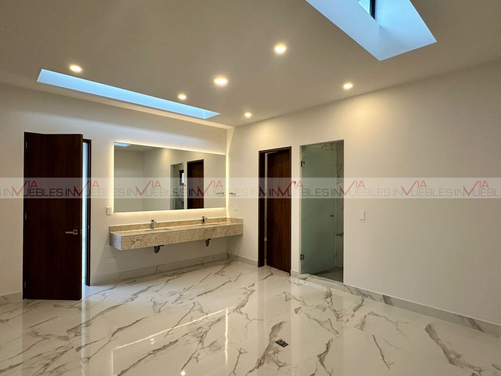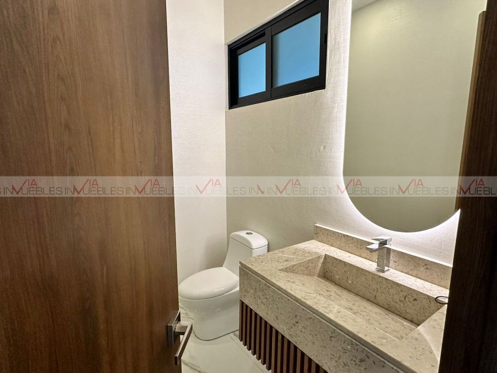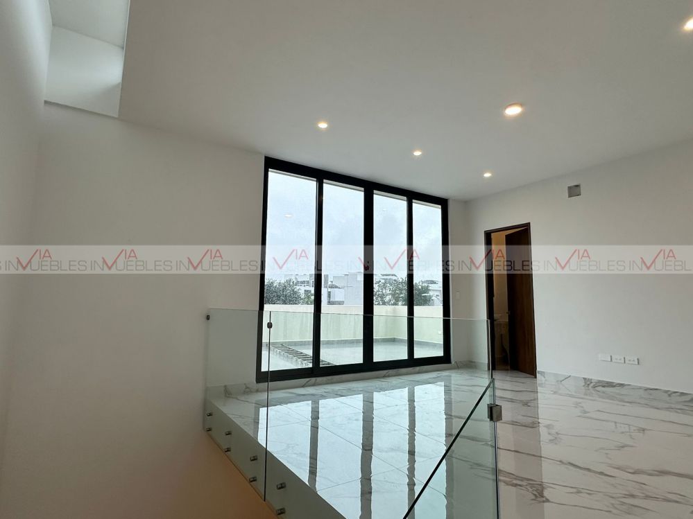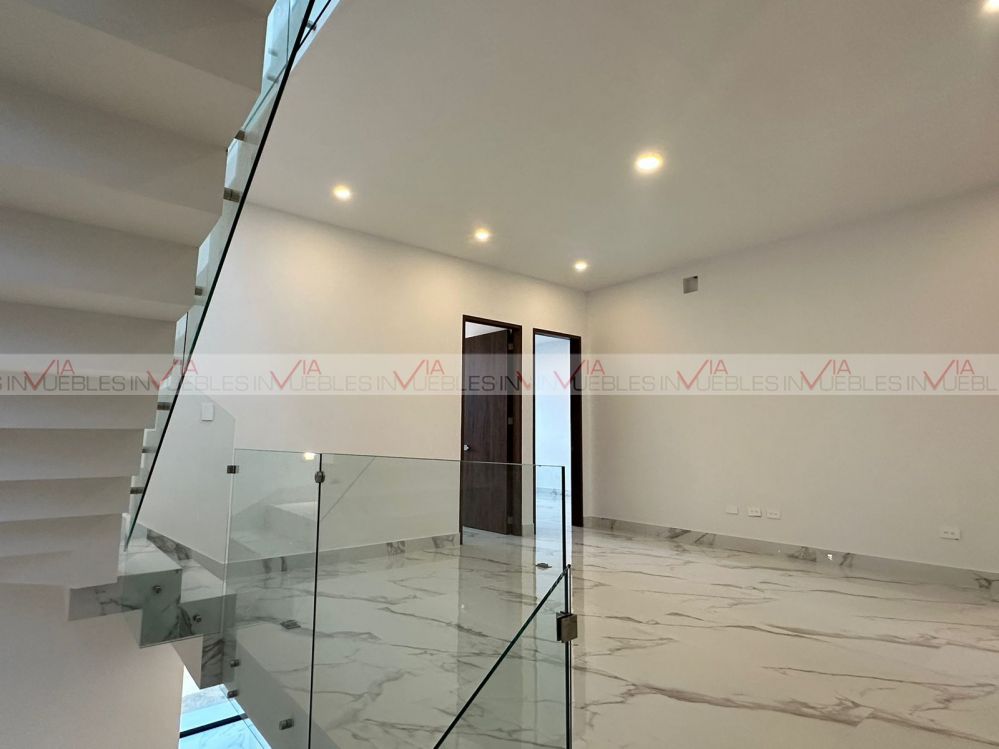 Hermosa casa en VENTA ubicada en Mítica Residencial, Santiago, NL. Cuenta con 200 metros cuadrados de terreno y 346 de construcción + 85 de jardín. La casa tiene una altura libre de 3 metros y cuenta con estacionamiento para 3 carros, 3 recámaras + cuarto de servicio. Fraccionamiento privado cuenta con caseta de vigilancia y seguridad 24/7. En las fotos se puede ver el render de la casa y su distribución por piso, así como el avance actual de la propiedad. NIVEL 1 - Área abierta de cocina, comedor, sala, despensa walk-in, patio, baño de visitas, cochera para 3 carros, closet triques