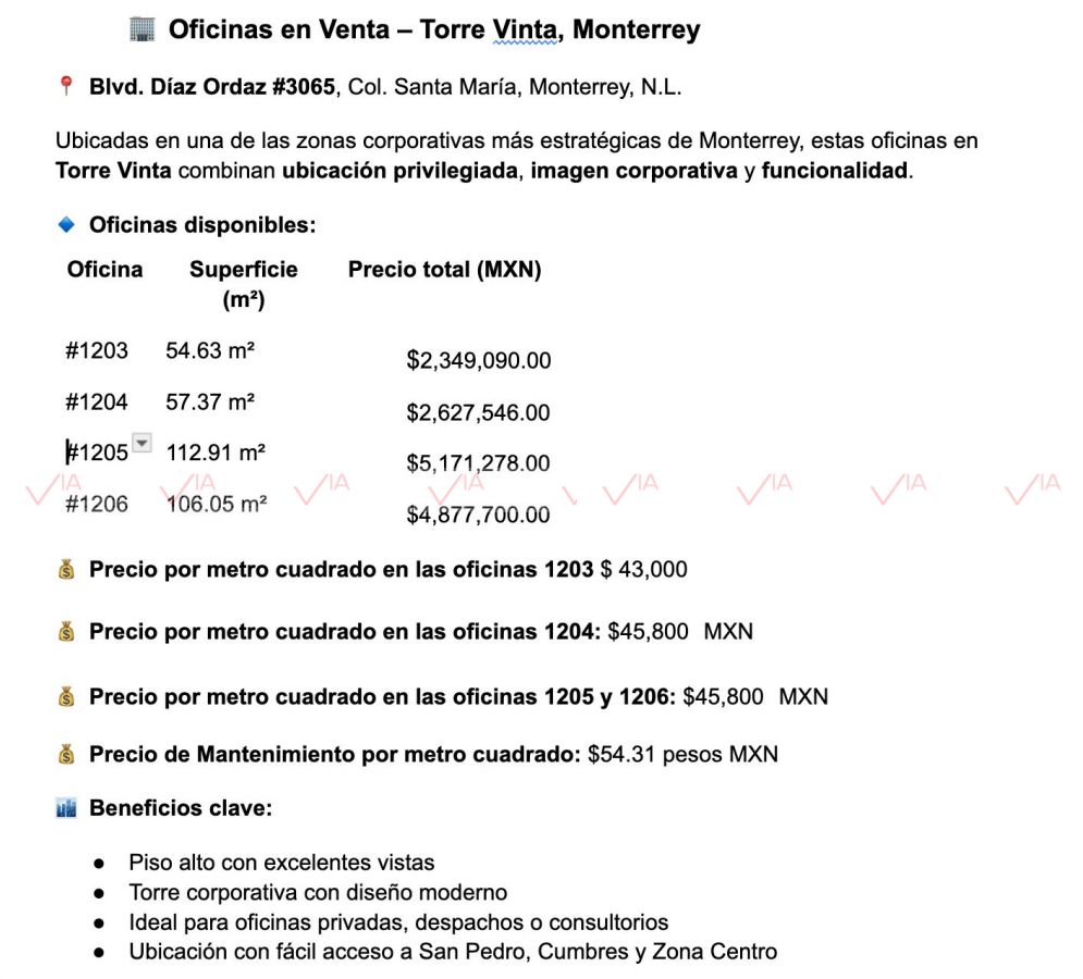 Oficina En Venta En Santa María, Monterrey, Nuevo León ID 116809 Santa Maria Torre Vinta
