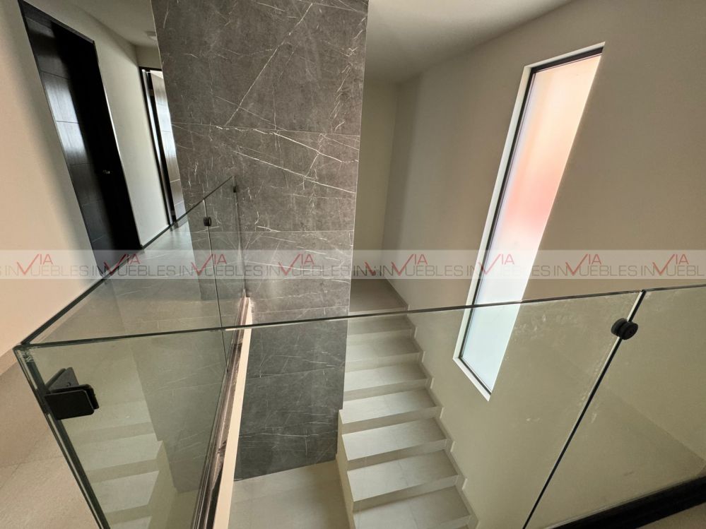 Planta Baja: Recibidor doble altura, hermoso y amplio baño de visitas, sala, comedor, cocina con family room, amplio patio con mucho espacio y listo para poner muebles de jardín. Cochera triple con portón eléctrico
