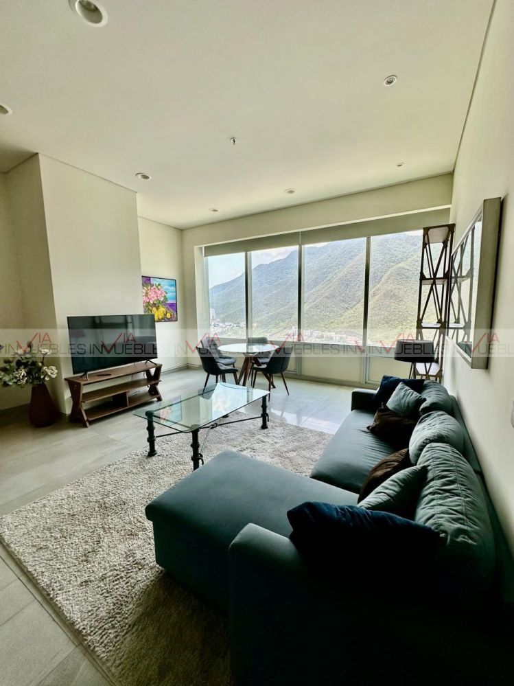 Este moderno departamento totalmente amueblado y equipado te regala vistas panorámicas inigualables desde cualquier rincón, incluyendo una impresionante vista a la Sierra Madre desde la recámara principal.