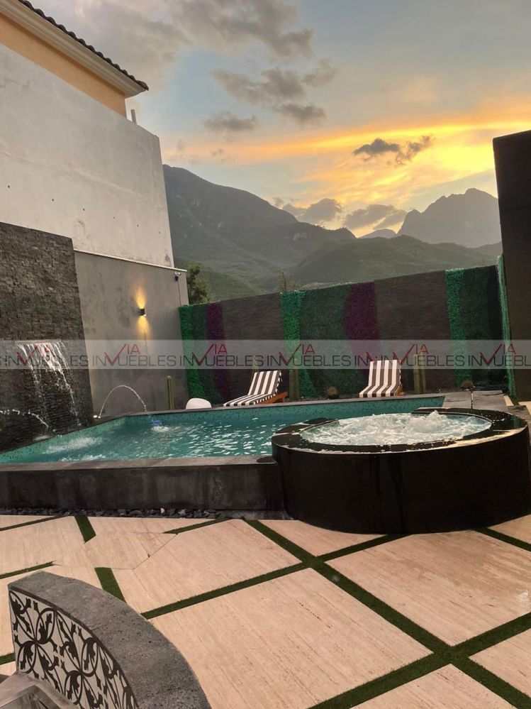 Primer planta: Hermoso recibidor de doble altura, amplia área de sala con grandes ventanales que brindan de muy buena iluminación con salida a terraza. Cocina integral de concepto abierto completamente equipada, con barra de granito con estufa central y espacio para 5 comensales. Hermoso comedor con espacio para 10 comensales con salida al área social exterior, ideal para integrar ambos espacios y tener reuniones de mayor aforo. El área exterior cuenta con una zona de bar/asador con acabados de acero inoxidable, alberca y jacuzzi con sistema de hidromasaje, fogatero y baño completo.