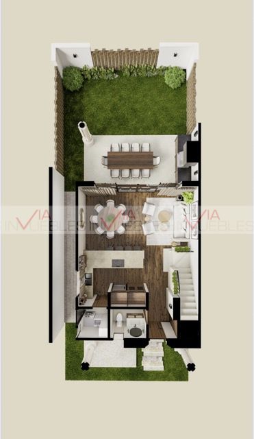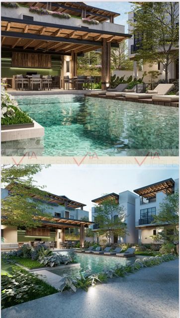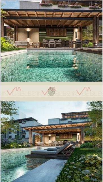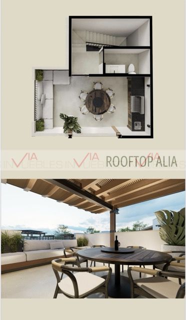 8 Alia: de 1 recamara, baño completo, sala, comedor, cocina, jardín y su rooftop con asador, sala de estar, comedor y medio baño.