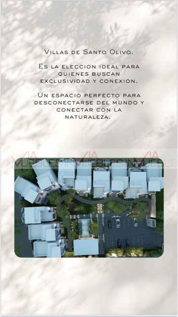 Villas de Santo Olivo, es la elección para quienes buscan, exclusividad y conexión, espacio perfecto para desconectarte del mundo y conectar con la naturaleza, con acabados de lujo y una distribución inteligente, todas con una gran terraza, hermosas vistas a nuestro a viñedo, con la experiencia de poder crear tu propio vino embotellado, cuenta con un parque lineal con hermosa vegetación, una gran alberca con diseño y acabados de lujo.