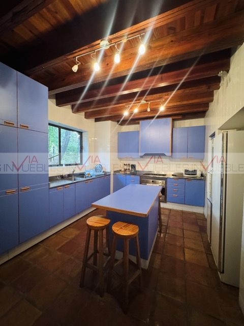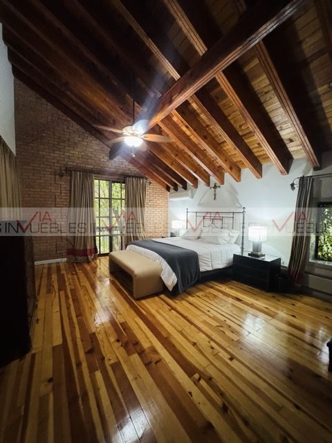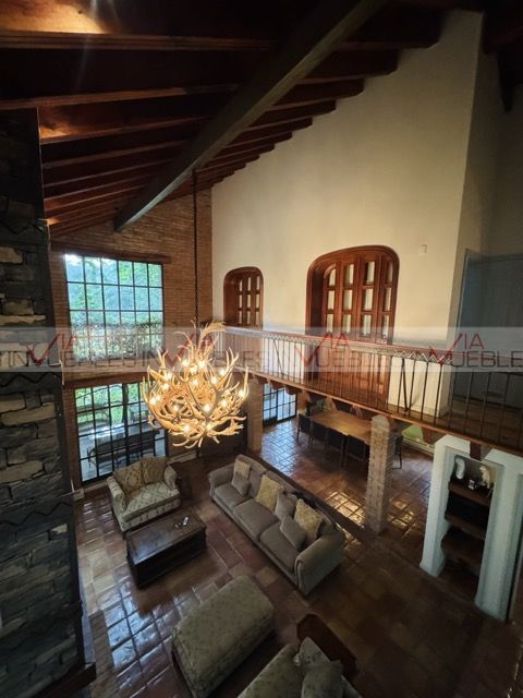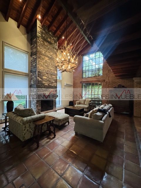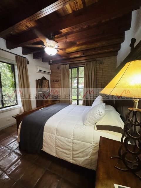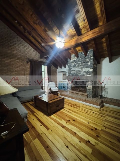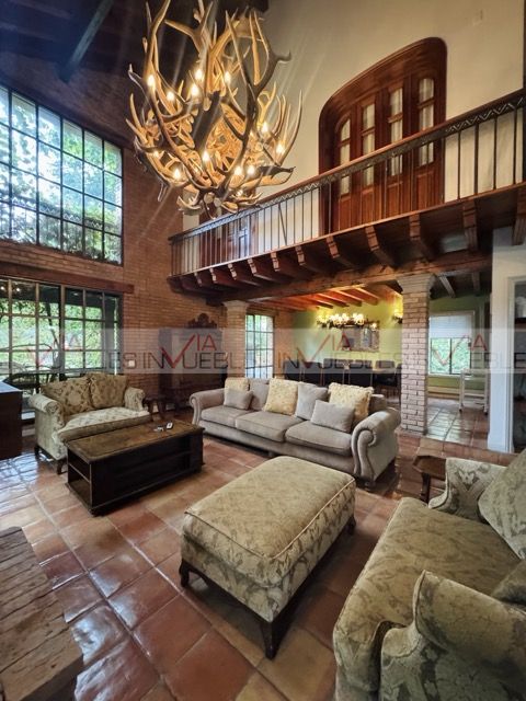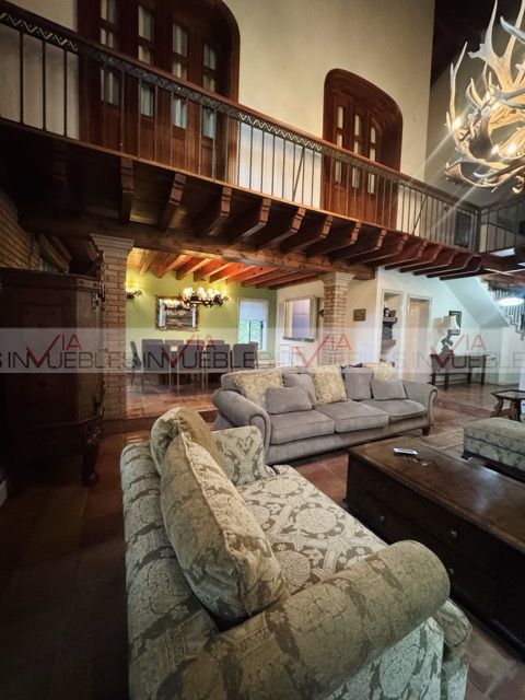 Casa tipo chalet en exclusivo fraccionamiento tipo rustico, Rincón del Montero, en parras de la fuente, con campo de golf, alberca al aire libre, 4 salones para eventos, la casa cuenta con 4 recamaras, todas con su closet y baño completo, 2 en planta baja, cocina equipada, sala de estar con doble altura, con cochera para 6 autos, estancia con chimenea, cuarto de juegos, cuarto de servicio, con hermoso y amplio jardín, completamente amueblada.
