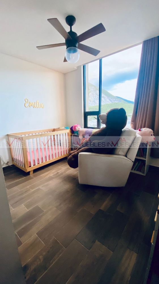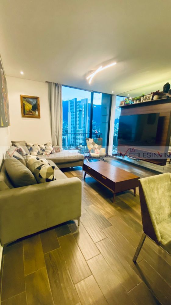 En venta hermoso departamento en Park Santa María, en piso 11. Excelente ubicación, con fácil acceso y rápido avenidas principales. Cuenta con dos recamaras cada uno con su baño completo, walk in closet en uno y closet el otro. Cocina integral con barra de granito, estufa, micro, campana, refri. Su sala y comedor, medio baño, lavandería y bodega; Incluyen minisplit. También cuenta con un balcón con vistas espectaculares a la Sierra Madre.