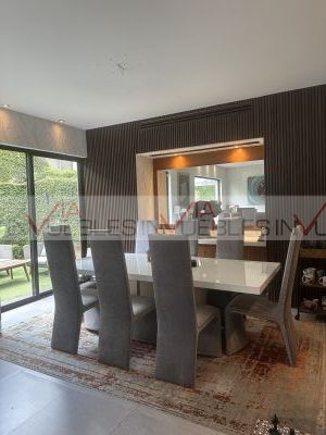 Finos acabados tapices y lambrin en paredes, pisos, de porcelanato rectificado, mármol, cuarzo y maderas finas.