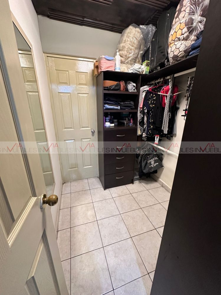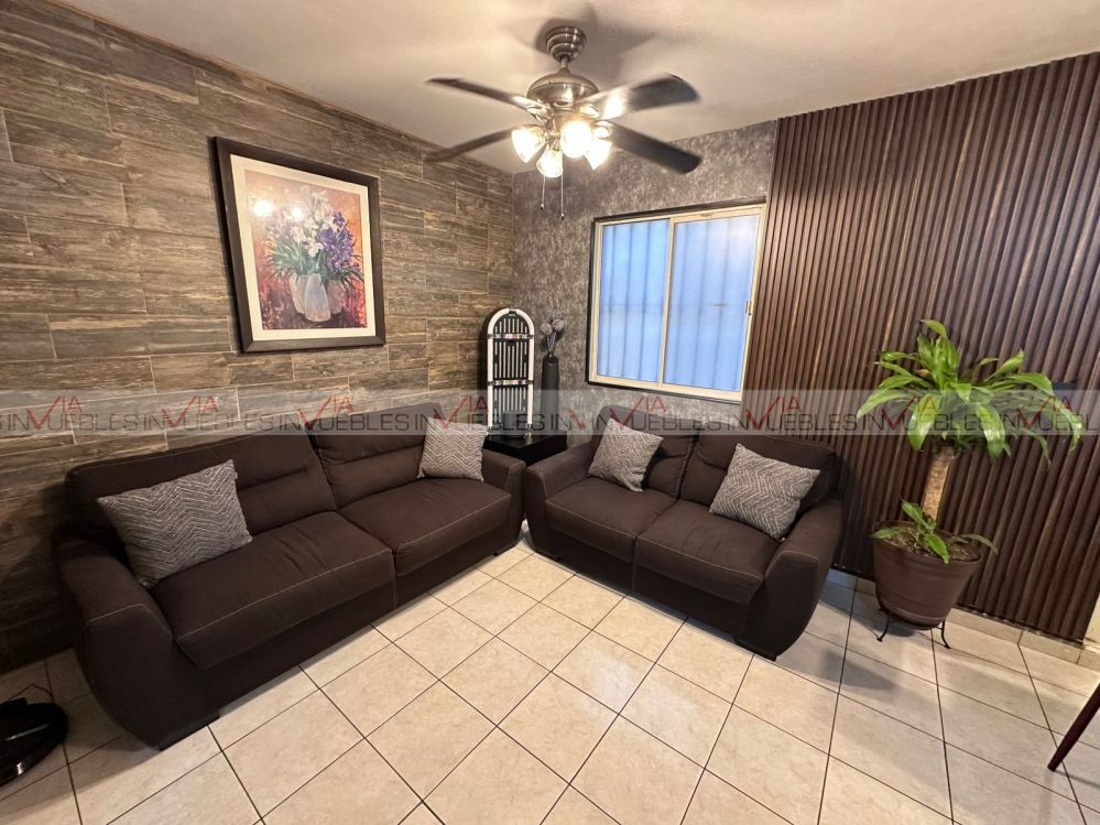 Cuenta con la siguiente distribución, en planta baja tiene: cochera para 2 autos con portón eléctrico, medio baño, sala, comedor, cocina integral, cuarto de lavado, patio y pasillo; en planta alta tiene recámara principal con baño y vestidor, 2 recámaras secundarias con closet, estancia y baño completo compartido con las recamaras secundarias.