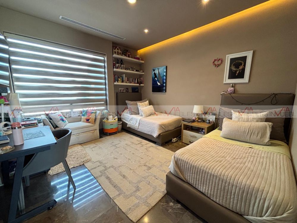 Características Principales: 3 amplias habitaciones, cada una con walk-in closet y baño completo privado, estudio con baño completo, ideal para oficina en casa o una cuarta recámara, estancia familiar perfecta para sala de tv o área de juegos, sala y comedor con espacios abiertos y excelente iluminación natural, cocina integral de diseño moderno, equipada con acabados premium, cuarto de servicio con baño, cochera para 3 autos con portón eléctrico
