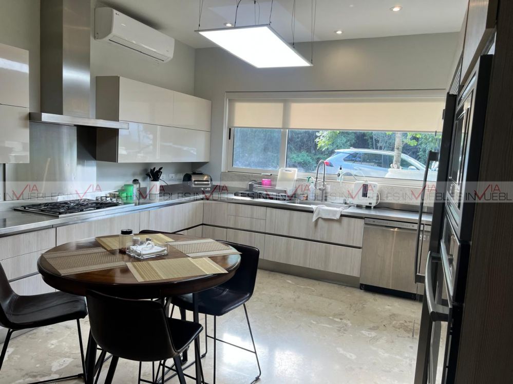 Casa en venta en zona privilegiada y exclusiva de Monterrey, zona Carretera Nacional, la colonia privada tiene sistema de seguridad, lo que lo hace un lugar muy tranquilo para vivir. Cuenta con 4 recámaras, un cuarto de servicio, 4 medios baños, 6 baños completos, 3 plantas, 5 cajones de estacionamiento, alberca y zona de asador. Hermoso y grande jardín. Agenda tu cita para conocerla.