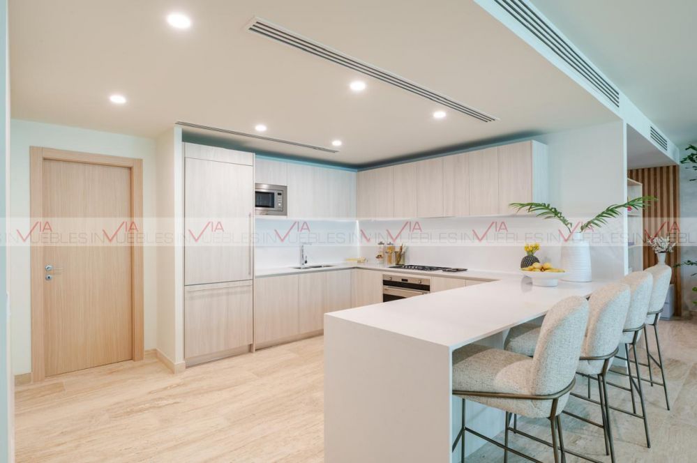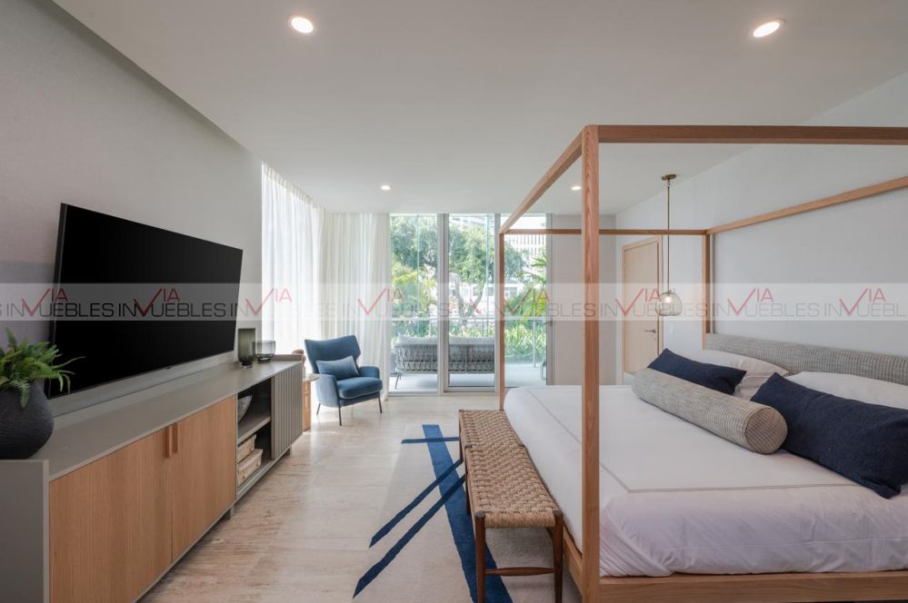 Departamento con vistas inigualables al caribe, distribución inteligente, elevador con acceso controlado que llega a la puerta de su habitación, plafones, amplias terrazas, ventanas panorámicas resistentes a huracanes, Cocina equipada con parrilla 5 quemadores, refrigerador, microondas, horno, tarja de marca Smeg, Carpinteria italiana de cocina, baños y puertas, Cristal templado en ventanas y canceles de baño, Accesorios de baño Hansgrohe, Lavamanos Villeroy & Boch, Pisos de mármol travertino, Aire acondicionado fan & coil central, Calentador cocina con diseño italiano, con cubierta de piedra, equipado, pisos de mármol premium, baños de lujo con tocador, doble lavabo, cuarto de servicio, dos cajones de estacionamiento y bodega, amenidades con alberca, club infantil, playa, asadores, campo de mini golf, valet parking 24/7