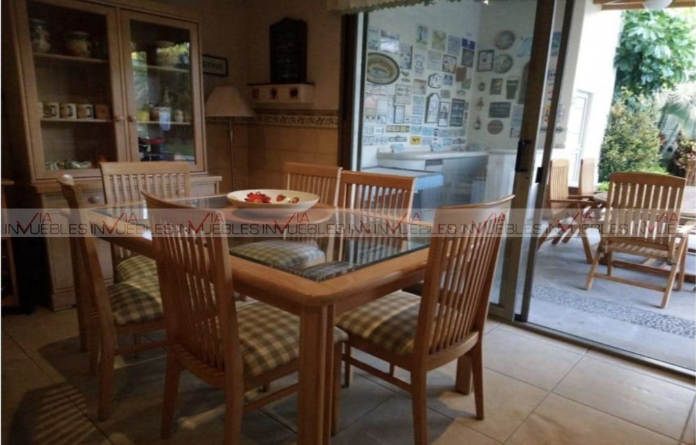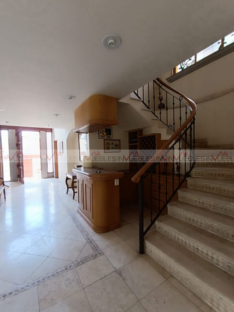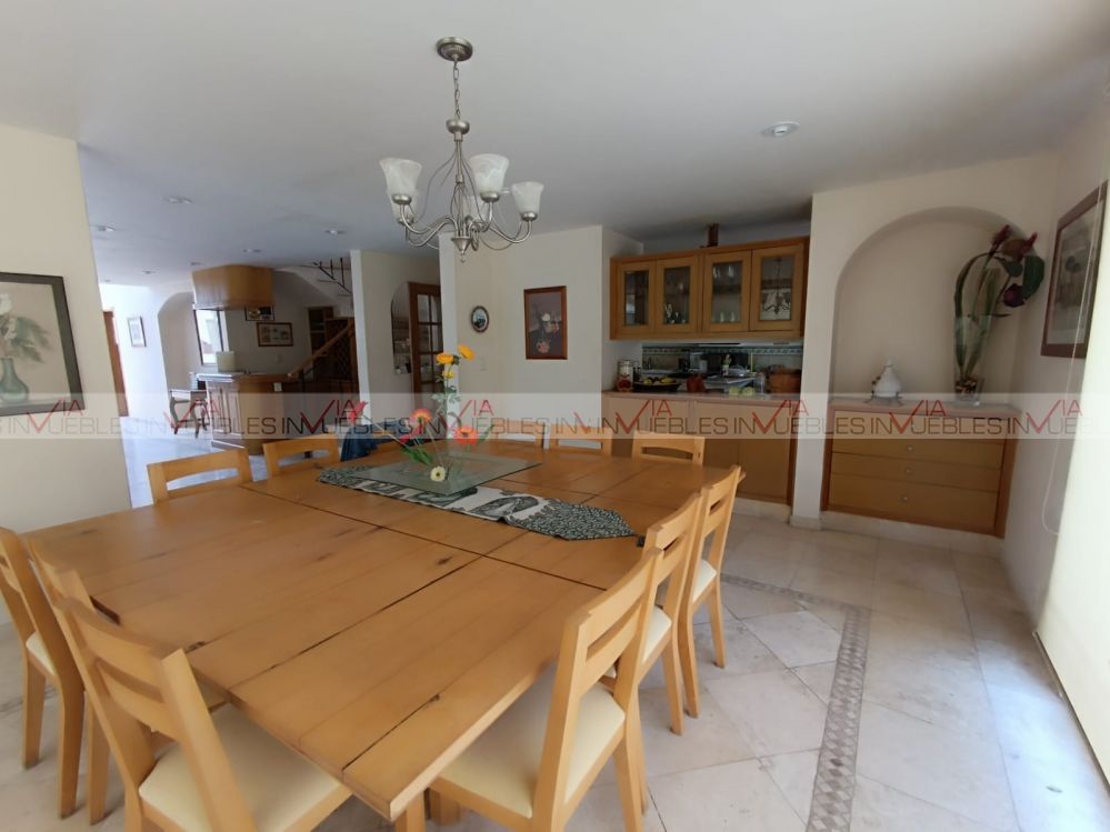 Características: superficie total de 910 m2 y 610.92m2 de construcción, 2 plantas, 5recámaras contando el del cuarto de servicio, 2 medio baños, 5 baños completos, 4 cajones de estacionamiento (rampa descendente), bodega, luz natural con amplios ventanales
