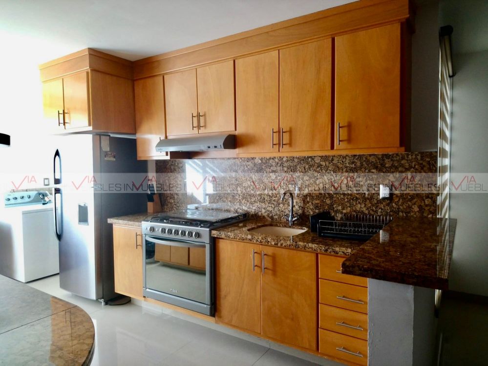 Este departamento cuenta con 3 recamaras, 2 baños completos, 2 cajones de estacionamiento y está equipado con cocina, estufa, boiler, gas, luz y agua.