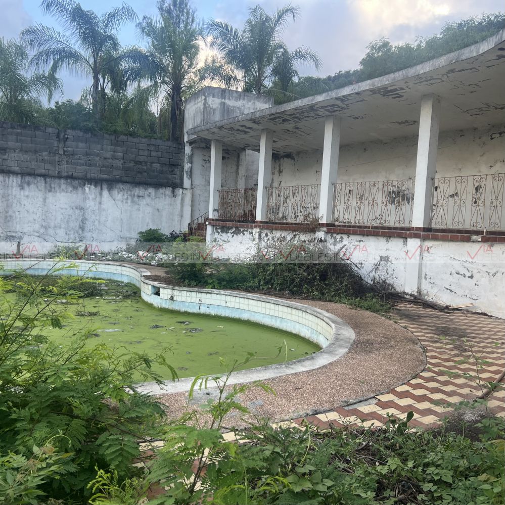 Venta de Quinta para remodelar en Santiago N.L. el Huajuquito, se encuentra en un terreno de 2,836.05M2 con 21.9 metros de frente y 129.50 metros de fondo, ascendente con rampa de concreto anti derrapante para vehículos, cuenta con 3 zonas planas, la primero completamente libre para construir, la segundo con albercas, terraza y baños, la tercera con una construcción aproximada de 250 metros cuadrados, de dos niveles, con muros de block, techos de concreto, ventanas y puertas de fierro, el primer nivel con piso de cemento y el segundo nivel con amplio salón con pisos cerámicos, baños, terraza y hermosas vistas panorámicas , antigüedad aproximada de 40 años, servicios de luz y A&D, excelente ubicación, muy cerca de carretera nacional. ¡Negociable!