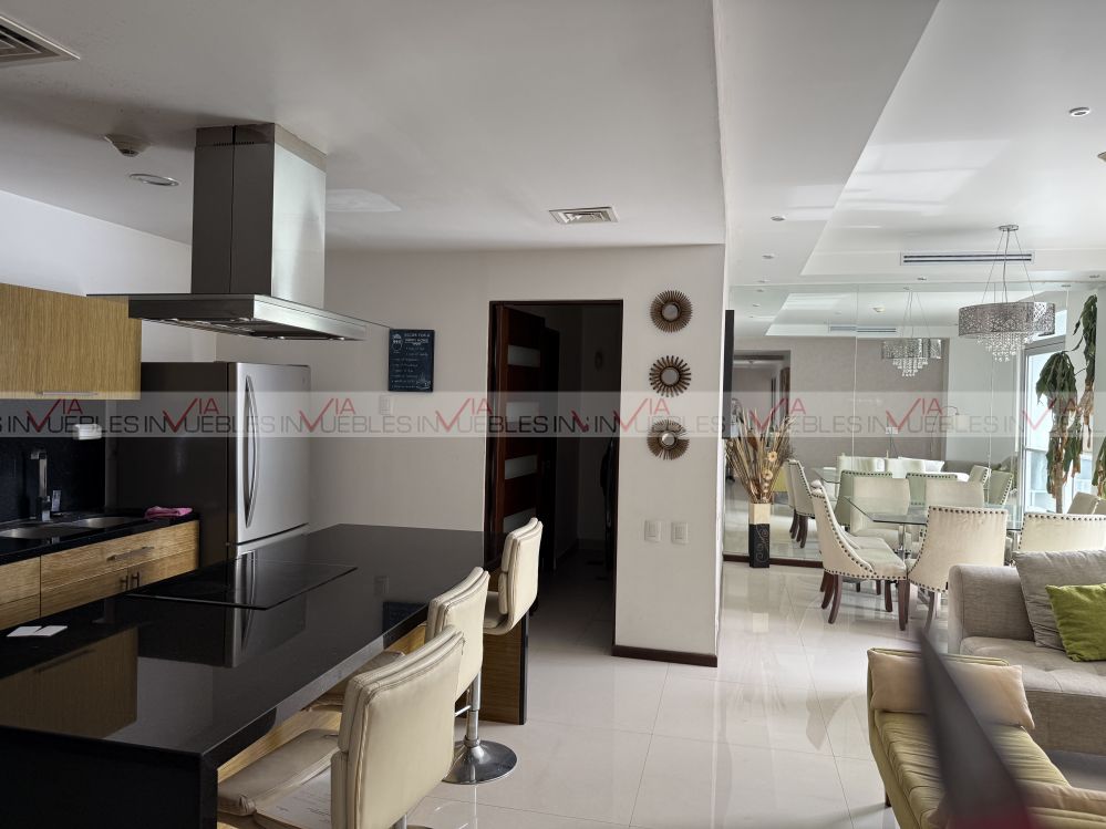 Hermoso departamento a solo dos minutos de san pedro y a ocho minutos del Tec de Monterrey, recamara principal con baño completo y walk in closet muy amplio, dos recamaras secundarias que comparten baño completo y medio baño de visitas, cuarto de servicio con baño completo y hermosas amenidades, ya incluye la cuota de mantenimiento.