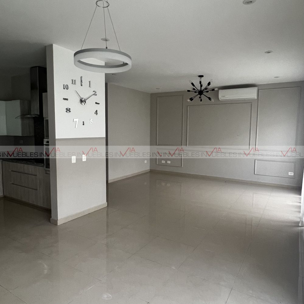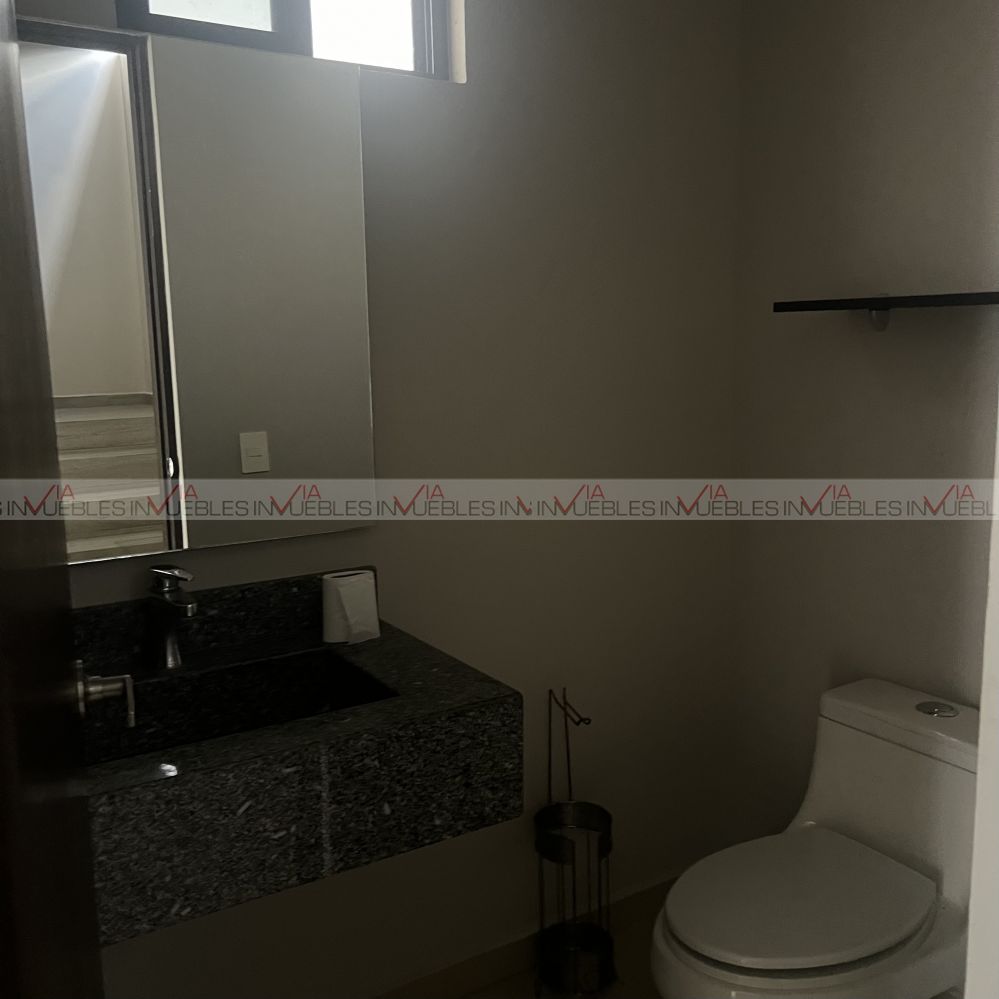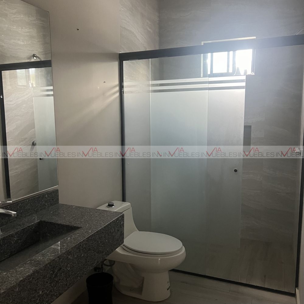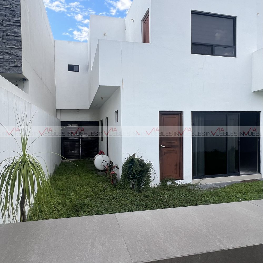 Renta esta hermosa casa en el Cercado Santiago, N.L., con una construcción de 300 metros cuadrados en un terreno de 230 metros cuadrados. Con 3 amplias recámaras, cada una con balcón, minisplits, abanicos de techo, baño completo y walking closet, esta propiedad cuenta cocineta equipada con parrilla, campana, micro ondas, horno y refrigerador, lavandería con centro de lavado, boiler y cámaras de seguridad, cortinas y candiles en sala comedor, persianas black out en recámaras y family room. Amplio patio con barra de concreto, tarja y asador, 2 cajones de estacionamiento. Se aceptan mascotas. Disfruta de esta casa con todas las comodidades y hermosas vistas frente a parque.