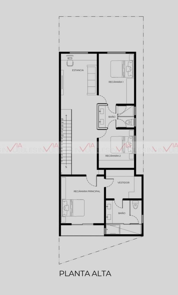 Planta Alta: 3 recamaras con baño privado cada una y con walking closet la recamara principal, área de estancia