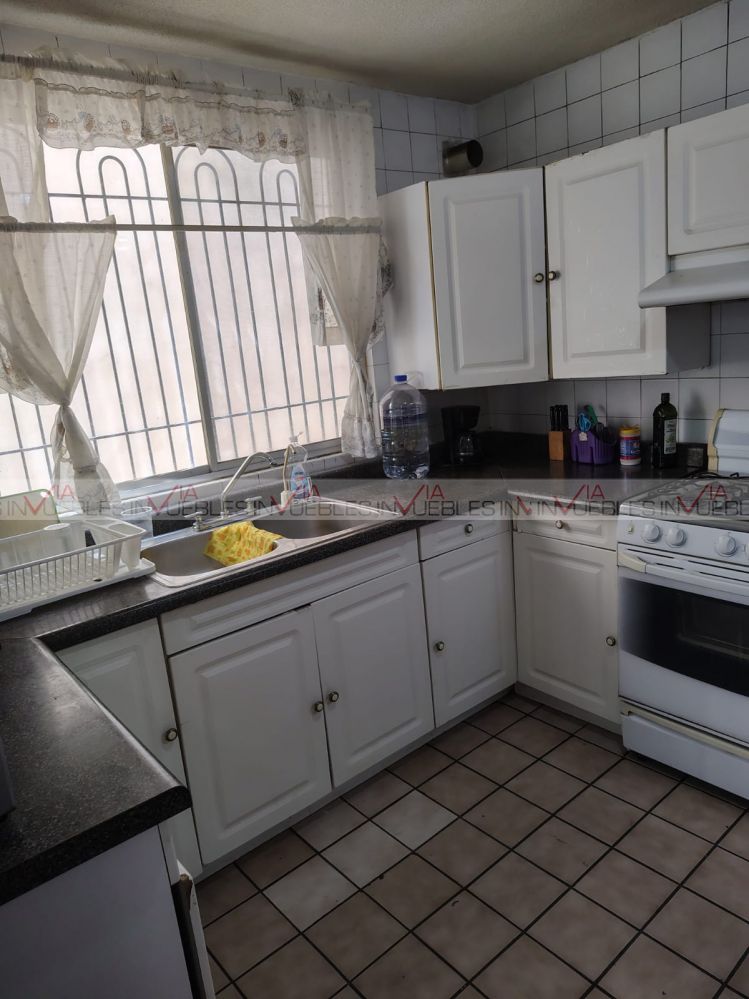Casa de dos plantas equipada y amueblada, cochera para dos autos, sala comedor, cocina integral con estufa y refrigerador, medio baño, lavandería con lavadora, secadora, boiler, patio y pasillo de servicio, planta alta; 3 recamaras, 2 recamaras con closet y recamara principal con vestidor y baño completo, baño completo compartido. Requiere Póliza Jurídica