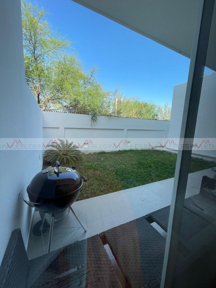 Vive en el exclusivo Magenta Residencial en esta casa en venta con todas las comodidades que necesitas. Colonia privada con seguridad 24/7 , cuenta con área común con cancha de basquet y soccer, terraza con asador y juegos infantiles. Cerca de colegios, centro comerciales, HEB, Soriana, hospitales. Casa de dos plantas , la planta baja cuenta con sala, comedor, amplia cocina, medio baño, estudio , lavandería, cuarto de servicio, terraza con jardín y cochera para dos autos, en la segunda planta hay 3 amplias recamaras cada una con su baño y walking closet y un área para sala de TV. Con una superficie de 269m2 de terreno y 371m2 de construcción, ofrece un espacio amplio y funcional.