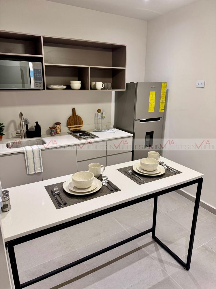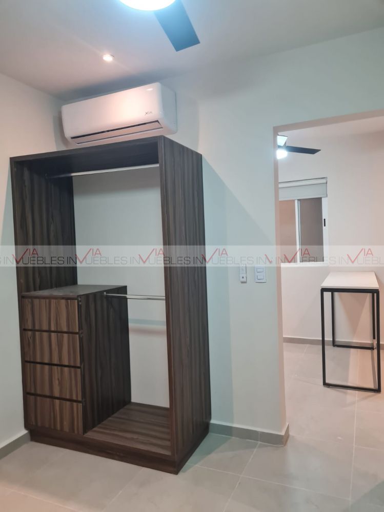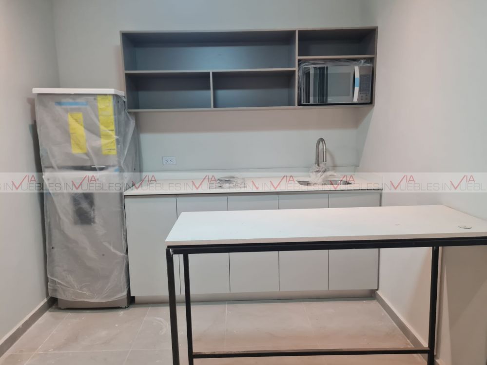 Hermoso departamento tipo loft en renta en Mitras Norte de 1 recamara, recién remodelado, equipado con minisplit frio-calor, cocina, refrigerador, parrilla electrica de 2 quemadores, horno de microondas, closet, cama, lava secadora. Con excelente ubicación muy cerca de la estación del metro y a unas cuadras de avenida Lincoln y Gonzalitos.