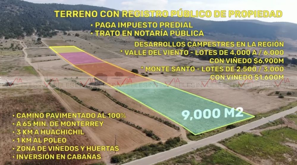 Amplio terreno con excelente ubicación sobre carretera, a pocos minutos del pintoresco pueblo de Huachichil y rodeado de importantes desarrollos como Montecana y Bodegas del Viento Viñedos, y proximamente Bodegas Don Leo Viñedos de Parras Coahuila.