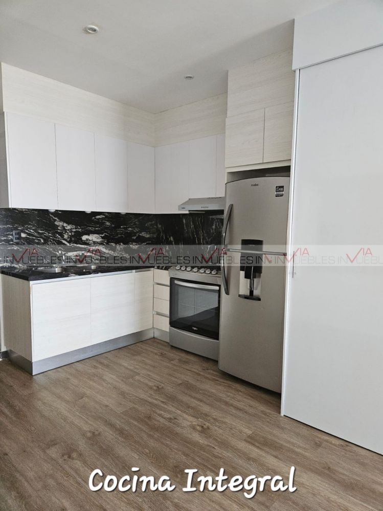 Departamento en renta de 90m2 en el centro de MTY a 5 min del Túnel de la loma larga que conecta a San Pedro. El departamento cuenta con una recámara amplia (opción a 2da) con un baño amplio con tocador y gran vestidor, 2 baños completos, cocina integral con barra desayunador movible, estufa, horno y campana.