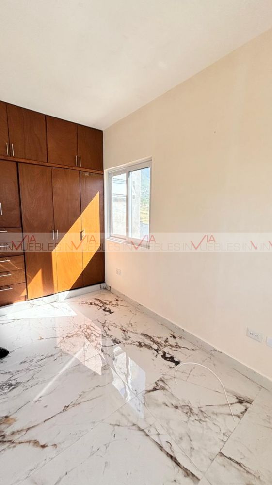Ofrezco casa nueva en renta. T:165 C:2220 en Residencial Vista Sierra. La casa cuenta con dos plantas, en planta baja se encuentra la cocina integral, espacio sala comedor abierta, medio baño, lavandería y patio, En planta alta, 3 recámaras, la principal con baño y vestidor, las dos recamaras secundarias con closet y baño, estancia y espacio de oficina. Casa nueva a estrenar!! Con privilegiada ubicación a 5 minutos de Esfera Mty - Carretera Nacional. No se aceptan mascotas. Renta en $35,000 . Póliza jurídica.