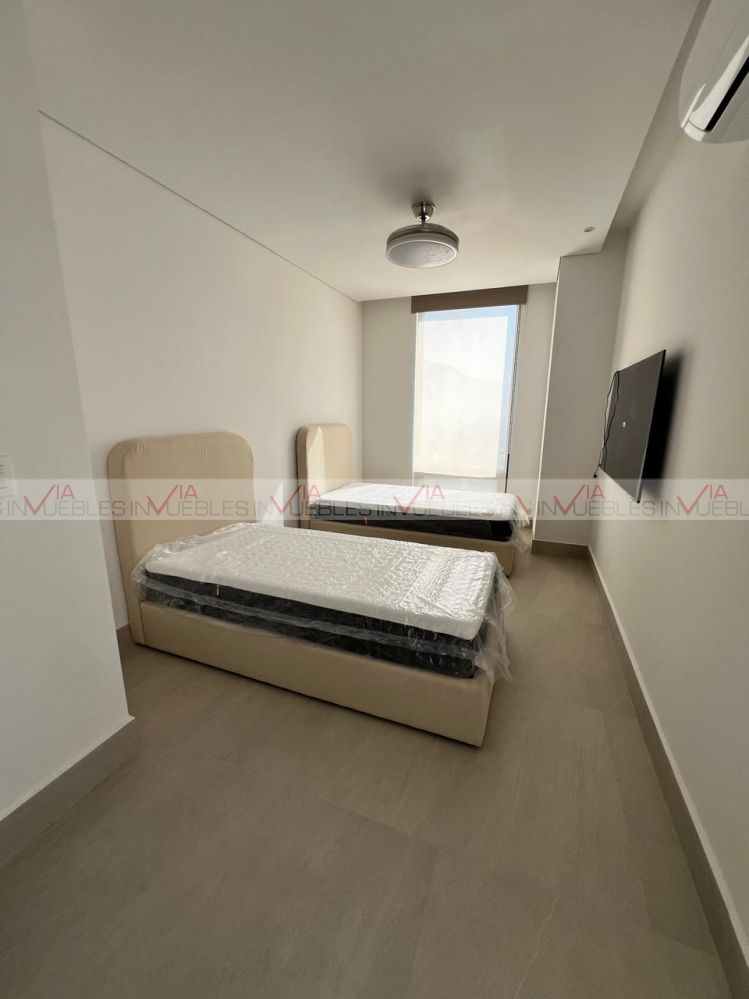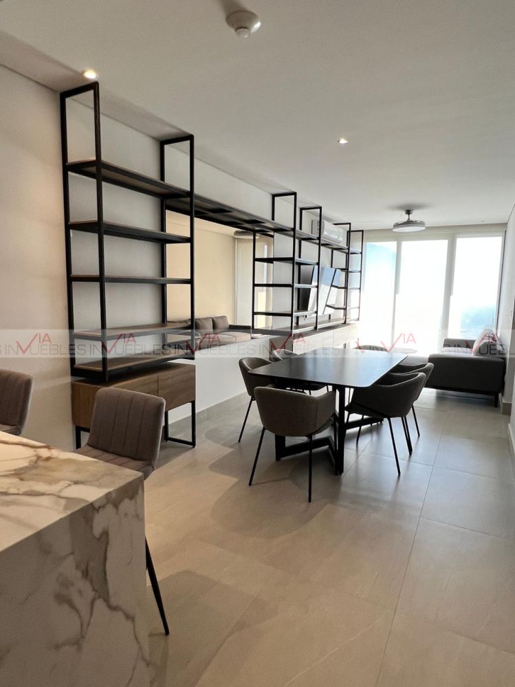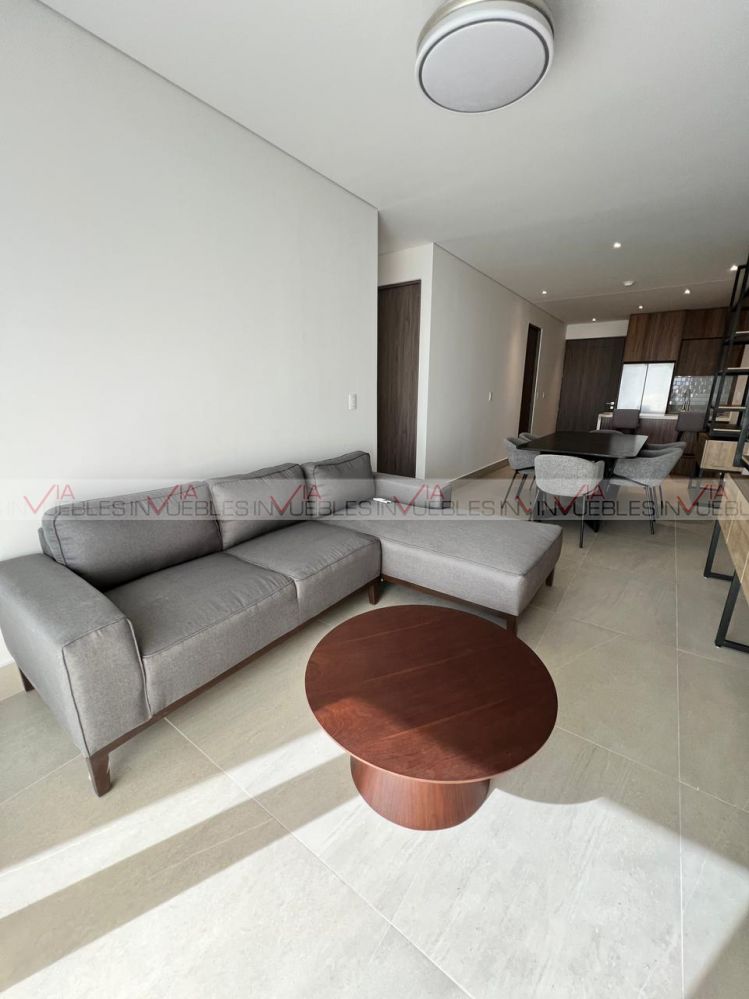 Hermoso departamento en renta en Valle Oriente, con 2 baños completos, 3 recamaras, 2 cajones de estacionamiento y una superficie de 111 metros cuadrados.