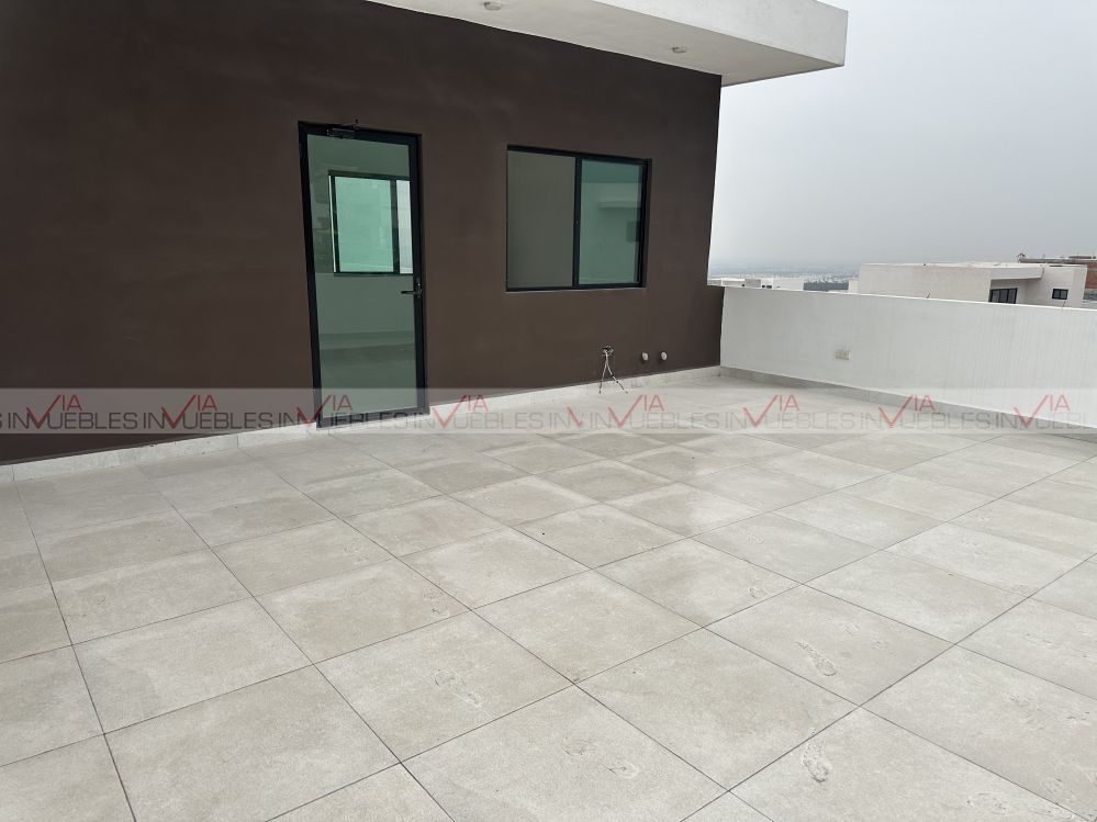 Hermosa residencia ubicada en privada, en la zona Dominio Cumbres. Cuenta con caseta de vigilancia, con hermoso parque. La casa tiene 3 niveles, en planta baja sala comedor, cocina y alacena espaciosa, medio baño y área para jardín. Cochera para 2 carros. En el segundo nivel tenemos una estancia de buen tamaño, recamara principal con walk in closet y baño completo, dos recamaras con baño completo y closet de pared, también cuenta con cuarto de lavandería. En el tercer nivel cuenta con una sala de TV y con dos terrazas, una con vista a la hermoso Cerro de las Mitras y la otra con vista a la ciudad. Ven a conocerla y disfruta del aire puro y belleza del lugar. Estrénala ya! No pierdas la oportunidad de vivir en este increíble espacio con una ubicación privilegiada.