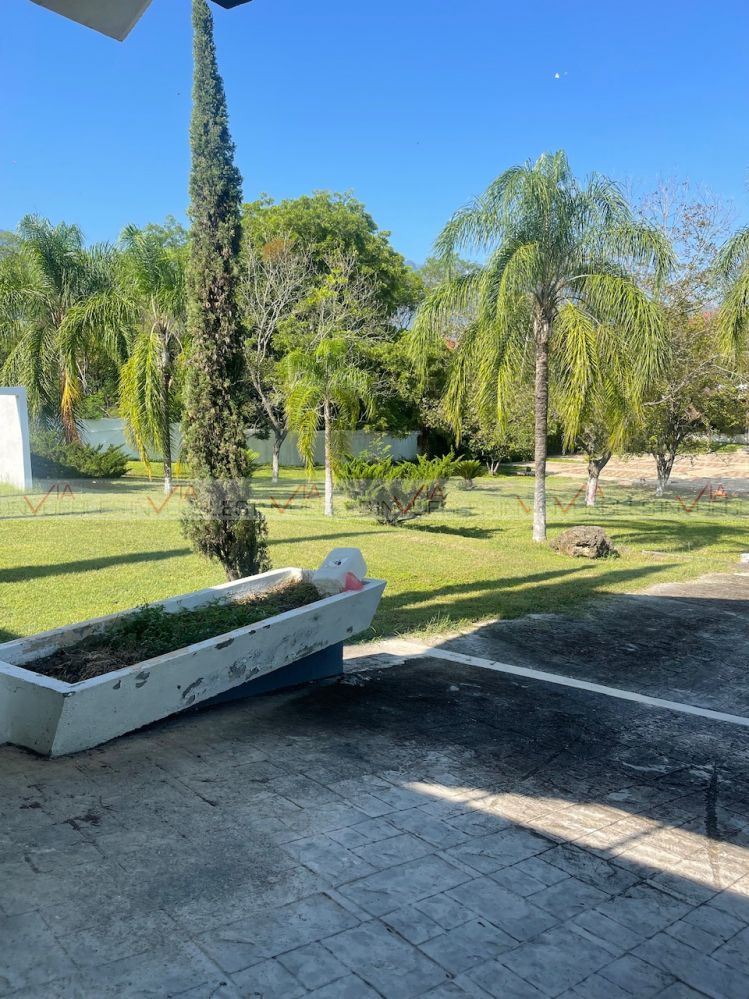 La propiedad cuenta con una casa pequeña en forma de pirámide con una recámara y un baño, alberca de muy buen tamaño con baños y regaderas para hombres y mujeres, palapa muy con asador y mucho espacio de jardín, también cuenta con una propiedad para el que cuida la quinta.