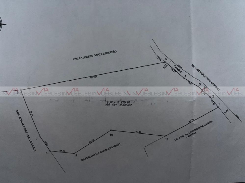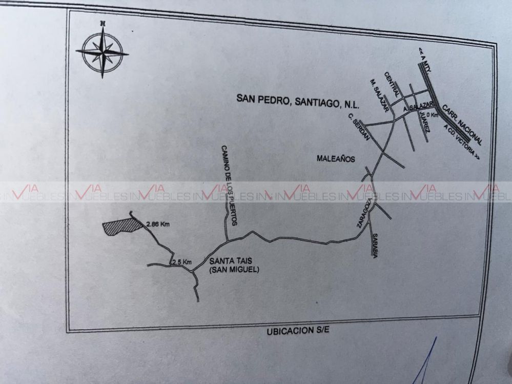 Terreno campestre, no urbanizado, ideal para cabañas o casa de descanso. Ubicado en San Pedro, Santiago N.L. Rodeado de árboles y naturaleza. El total del terreno es de 12,920 mts2 con superficies ascendentes y descendentes. Predial al corriente, libre de gravamen, papelería en regla, listo para escriturar.