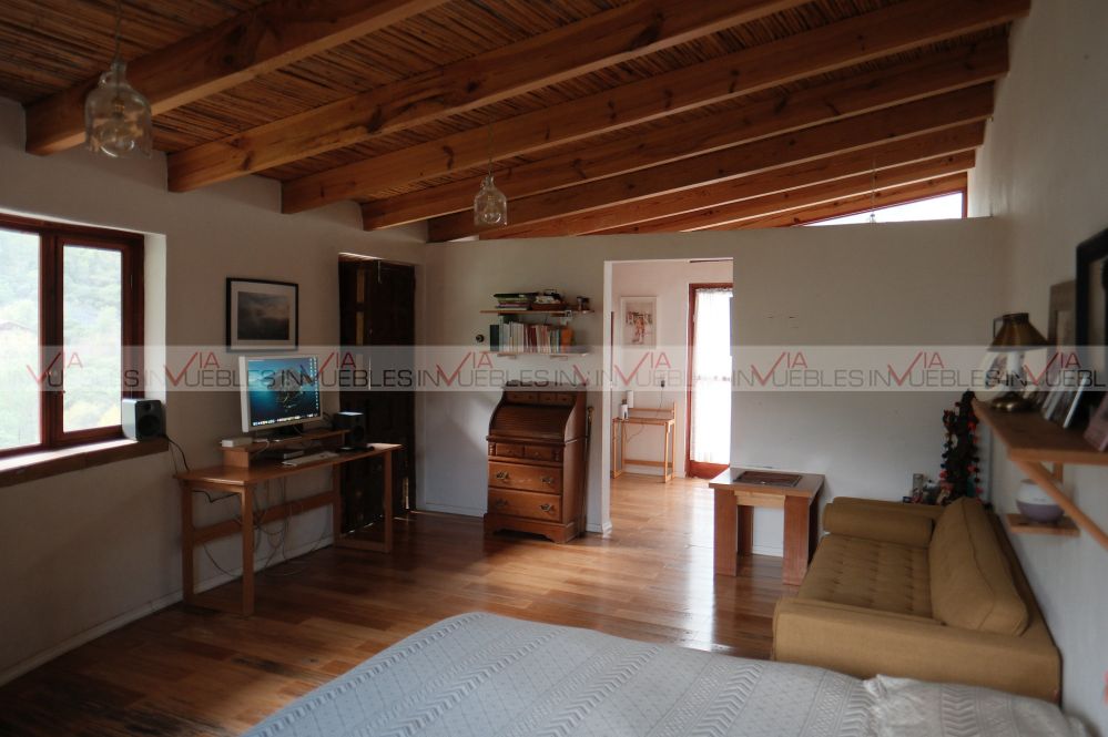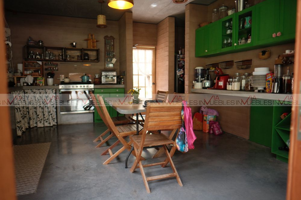 Una casa bastante unica y especial. Se divide en dos partes. La casa principal tiene 2 recamaras y un baño, la cocina amplia y muy luminosa. Tiene una terraza techada con asador de leña y horno para pizzas con un medio baño en el exterior que tambien ?uede servir como bodega.