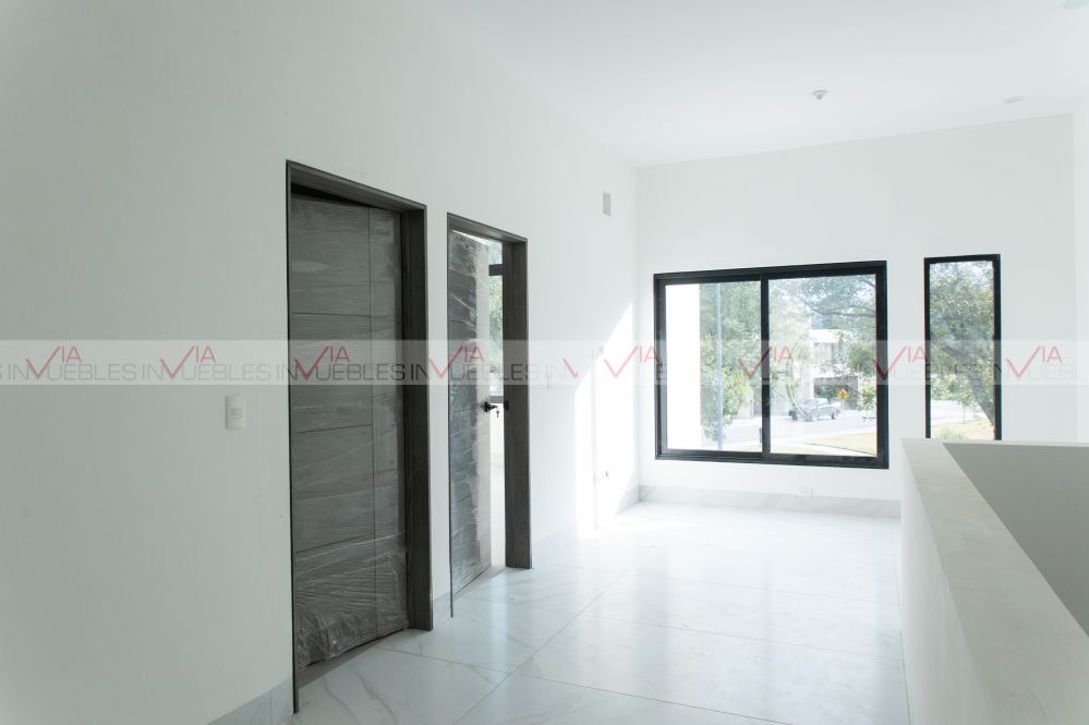 De dos niveles, tres recámaras, cuatro baños y medio, cuenta con cuarto de servicio con entrada al frente, cocina de madera con puertas tipo encino y con placa de cuarzo, lavandería en el segundo piso, Iluminación en escalera a base de lámparas, escaleras en huella de madera, salidas para paneles solares.