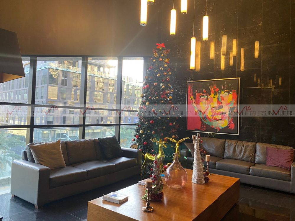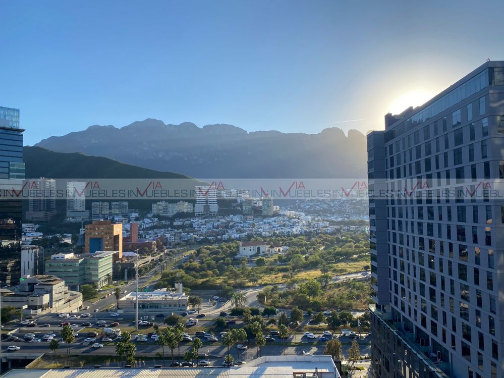 Departamento amueblado en torre Magma Towers, con ubicación privilegiada en Valle Oriente. Cuenta con 1 recámara con escritorio, walk-in closet con baño completo. Sala, comedor con mueble de Televisión, ventanal deslizable con vista hacia la Sierra Madre. Cocina integral con refrigerador, parrilla con campana, micoondas, barra desayunadora con 2 sillas. Equipado con clima central, lavasecadora, boiler, sink. Le corresponde 1 cajón de estacionamiento, seguridad 24/7.