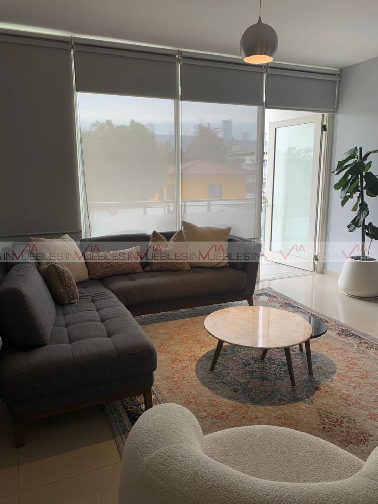 "Hermoso departamento en renta, totalmente equipado y con acabados de lujo, se encuentra en una torre de tan solo 16 departamentos, por lo que puedes disfrutar de la tranquilidad,son 160 m2 y cuents con 3 recamaras, la princiapal con baño y vestidor, las 2 secundarias con closet y comparten baño, cuenta con estancia, balcon con vista a las amenidades, equipado con refrigerador, climas frío calor inverter nuevos en todos los cuartos, lavadora y secadora 22/25kg, microondas y persianas nuevas. Puertas de encino en todo el departamento, un baño de visitas. Cocina con barras de cuarzo, piso nuevo, estufa teka con campana nuevas, Lavandería equipada y cuarto de servicio con baño completo.