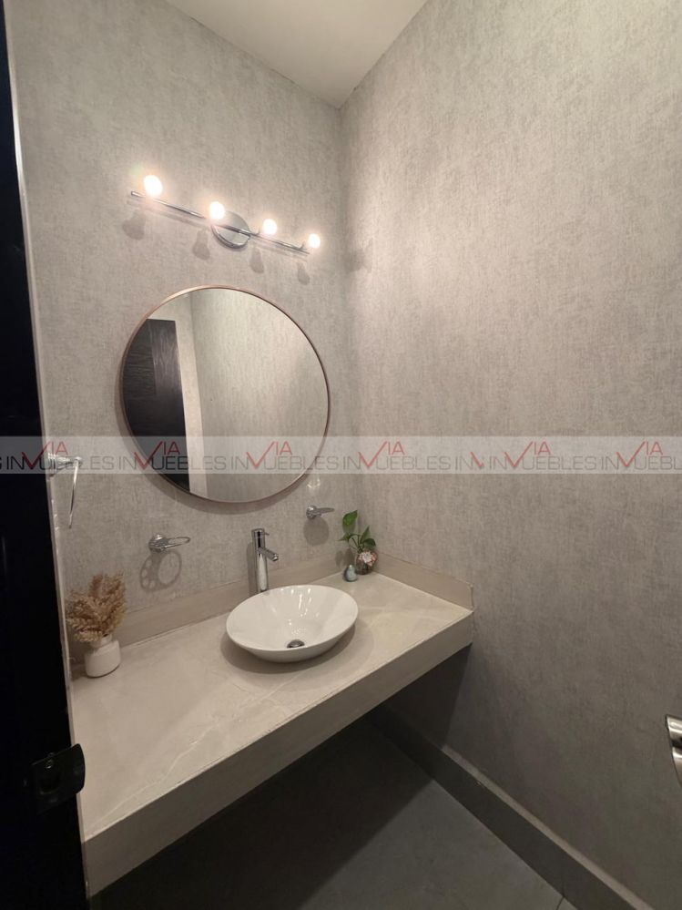 Planta alta: recámara principal con vestidor y baño, estancia de televisión, sink, 2 recámaras secundarias con closet que comparten baño completo.