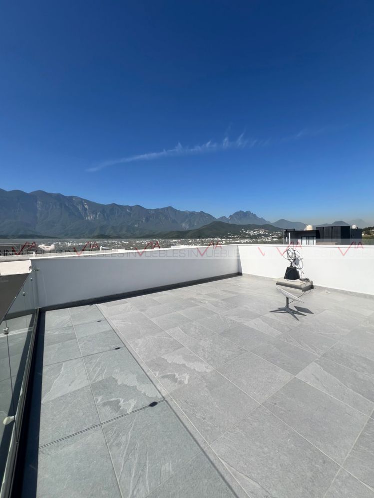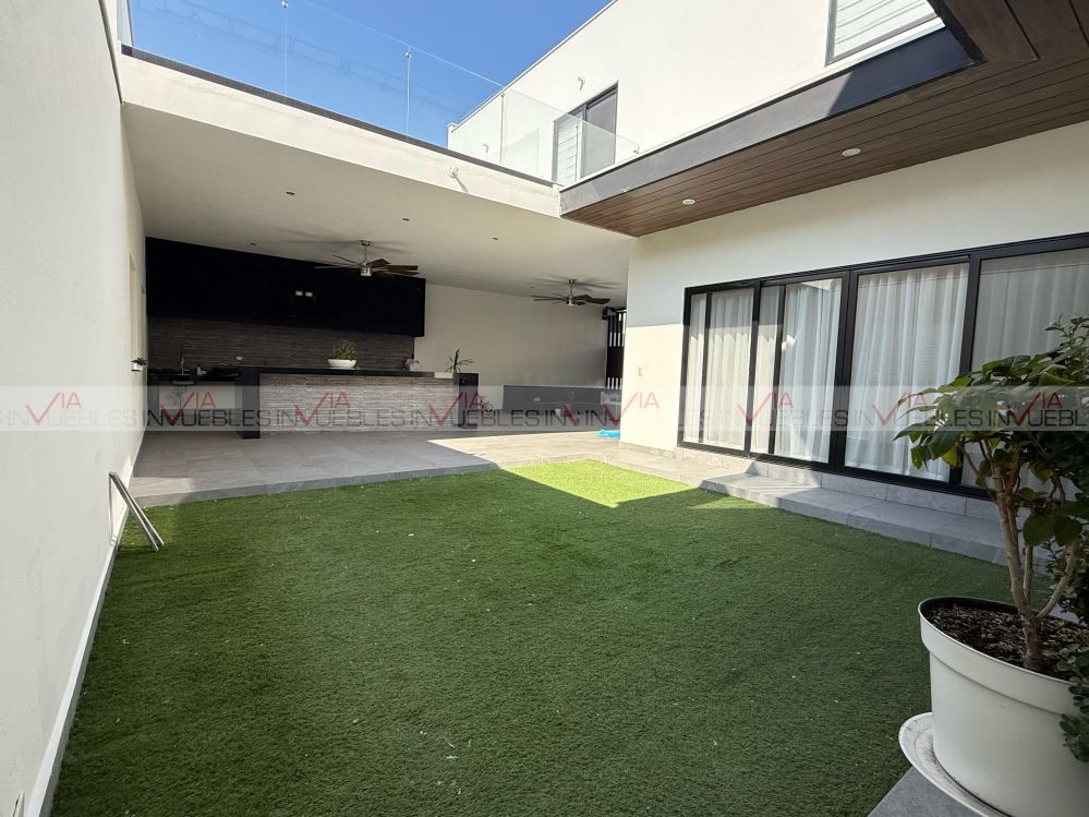 Casa Contemporánea en Renta en la privada Castaños del Vergel. La privada ofrece amenidades como alberca, cancha deportiva, área social y seguridad 24/7. La residencia consta de 3 niveles con una excelente distribución, 266 metros cuadrados de terreno y 400 metros cuadrados de construcción. Cuenta con cochera doble con capacidad total para 4 autos, cocina integral, así como 3 habitaciones, cada una con baño completo y vestidor; la recámara principal incluye una terraza privada. Además, dispone de estancia exterior y un amplio patio con área de asador techado. La propiedad está equipada con 12 paneles solares, lo que permite una mayor eficiencia y ahorro en el consumo de energía. Para formalizar la renta, se solicita un mes de depósito, un mes de renta por adelantado y garantía jurídica.