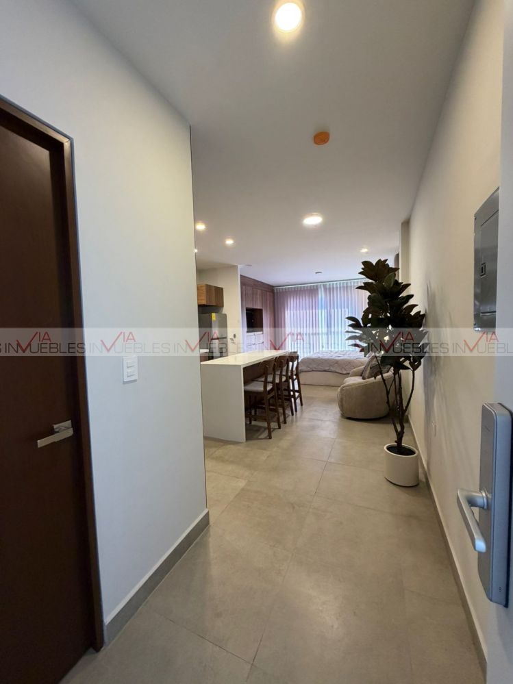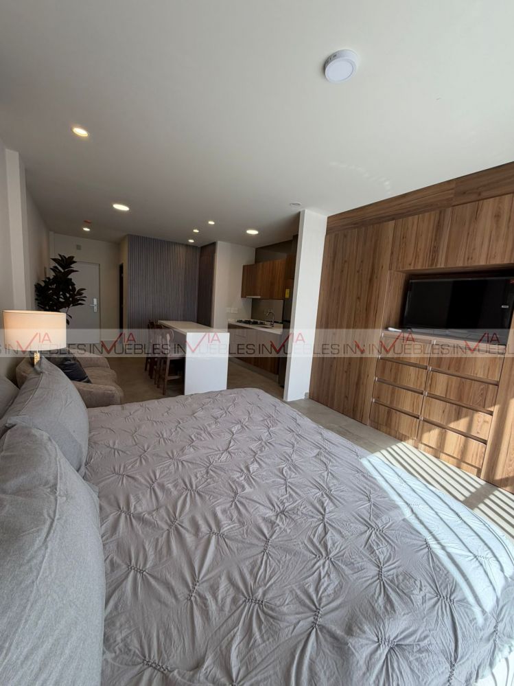 Increible Loft con diseño abierto y máxima iluminación en Amaire Cumbre Allegro, Zona Cumbres es ideal para parejas o personas solteras. Disfruta de un espacio fluido y moderno. Este departamento cuenta con un área de dormitorio integrada que permite una ventilación cruzada y luz natural inigualable. El diseño permite separar ambientes fácilmente con mobiliario, biombos o paneles corredizos si buscas mayor privacidad.Cuenta con 1 baño completo, 1 cajón de estacionamiento, en el 6to piso. Con 6 meses de antigüedad, éste departamento de 48 metros cuadrados ofrece comodidades como lavadora, secadora, cancelería de cristal y barra desayunadora. Además, viene amueblado con un love seat, cama king size, closet, TV y refrigerador. El edificio cuenta con amenidades como alberca, elevador, gimnasio, juegos infantiles, pet park y área de coworking. Incluye servicios de seguridad vigilancia 24/7, 1 minisplit Inverter, boiler, gas, luz y agua. La cocina está equipada con estufa. La renta incluye el mantenimiento. ¡No dejes pasar esta oportunidad!