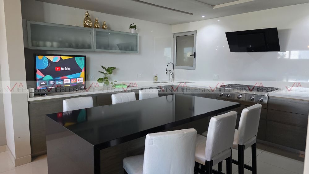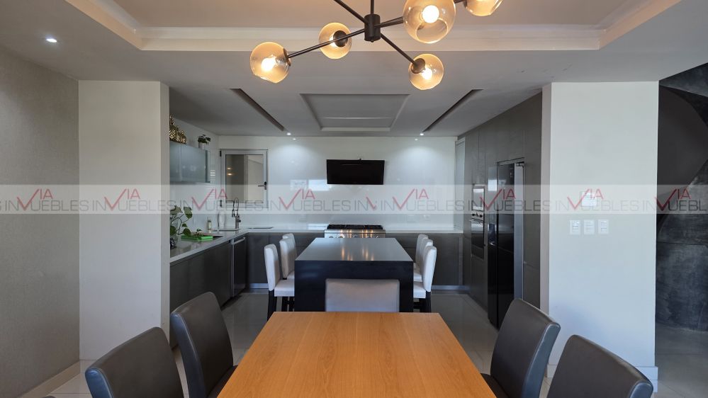 En Planta Baja tejen un recibidor de doble altura que le da amplitud y elegancia, además de la sala comedor, Cocina integral equipada con electrodomésticos de alta calidad, cubierta de cuarzo, elegante baño de visitas, una escalera con diseño moderno que conduce a la planta alta, donde se encuentra la recámara principal con baño y walking closet, una estancia, dos recamaras secundarias con baño y vestidor cada una.