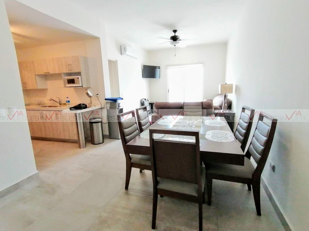Cuenta con cocina integral, cuarto de lavado, sala-comedor, recámara principal con vestidor y baño; recámara secundaria con closet de pared y baño a compartir con área social. Dos cajones de estacionamiento.
