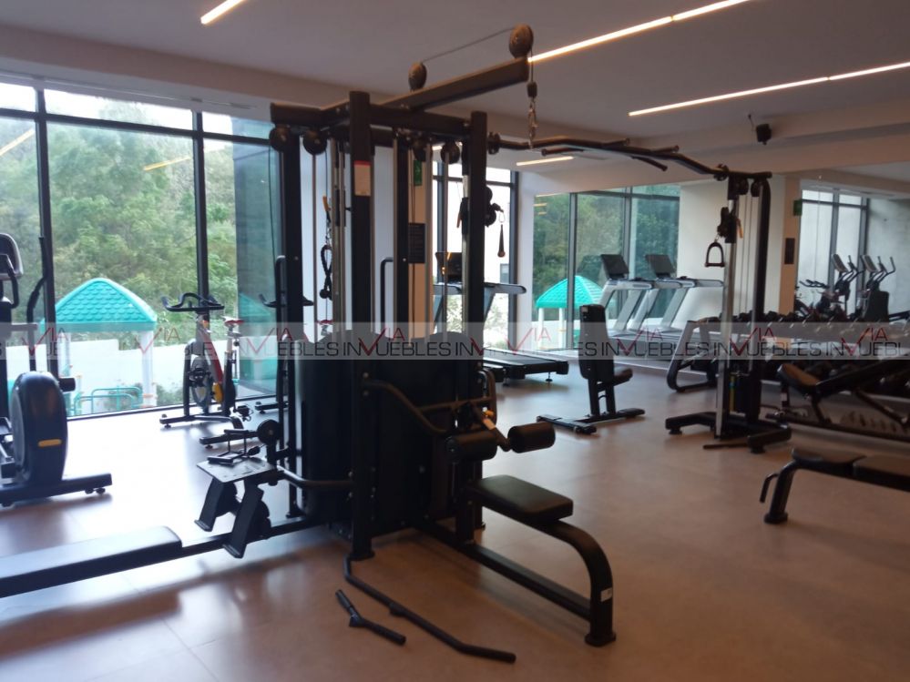 Hermoso departamento equipado en renta, inmejorable ubicación en Carretera Nacional, con vistas espectaculares, cuenta con sala, comedor, cocina con parrilla eléctrica, micro, campana, refrigerador, lavandería con lavaseco, dos recámaras con clóset y baño y además cuenta con Flex que puede ser estudio, otra recámara, oficina etc. dos lugares de estacionamiento y una bodega.