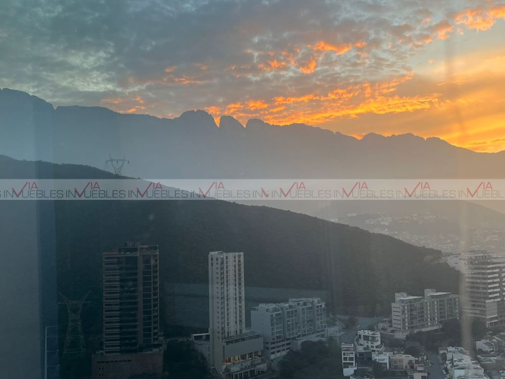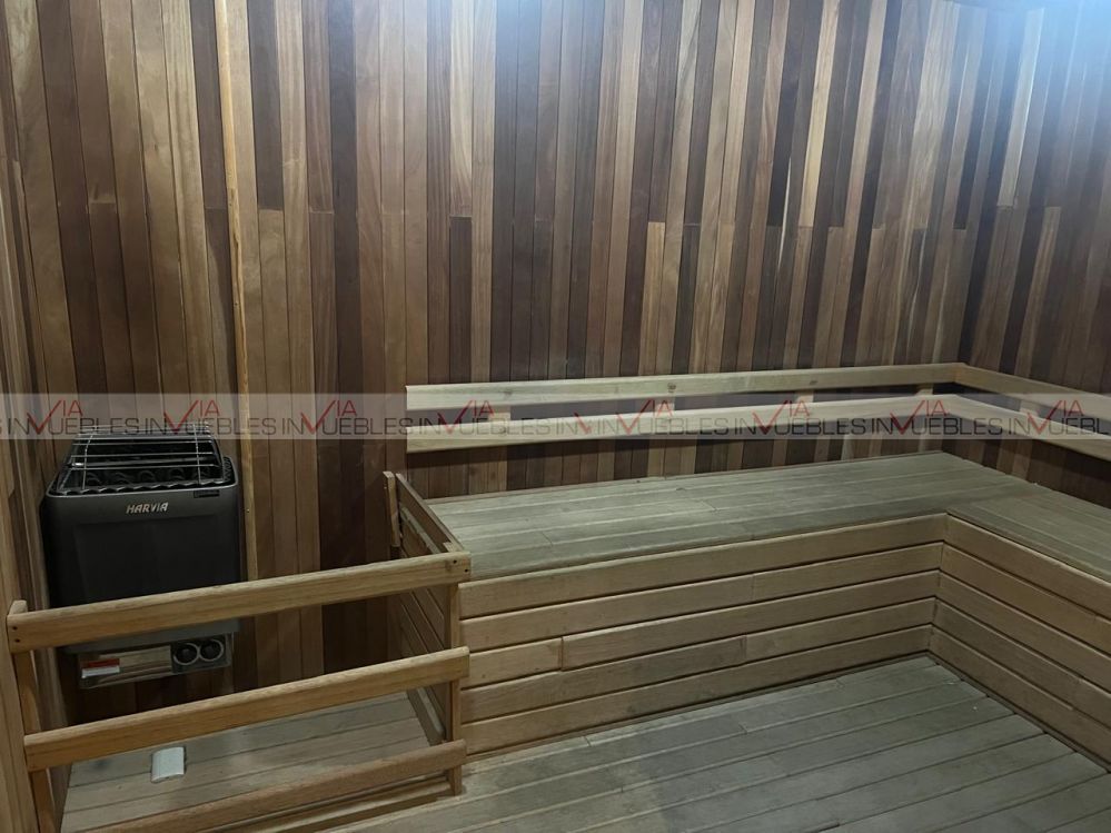 Departamento en Venta en Valle Oriente, cuenta con vistas espectaculares a la Sierra Madre y al Cerro de la Silla, con ventanales de piso en area social y ventanales con vistas a la SM, cuenta con 2 recamaras y 2 baños completos, más 1 medio baño y cuarto de servicio. Este inmueble de 255 metros de construcción en una sola planta, con 8 años de antigüedad, cuenta con 3 cajones de estacionamiento y una amplia gama de amenidades como sauna, juegos infantiles, parque, super 7 y banco en la planta baja. Además, incluye recepción, seguridad, alberca, jardín, elevador, gimnasio, clima central, teléfono, calefacción, terraza, boiler, luz, agua, cocina equipada con estufa, caseta de vigilancia, alarma, cisterna, bodega y la opción de tener mascotas. ¡Aprovecha esta oportunidad única!