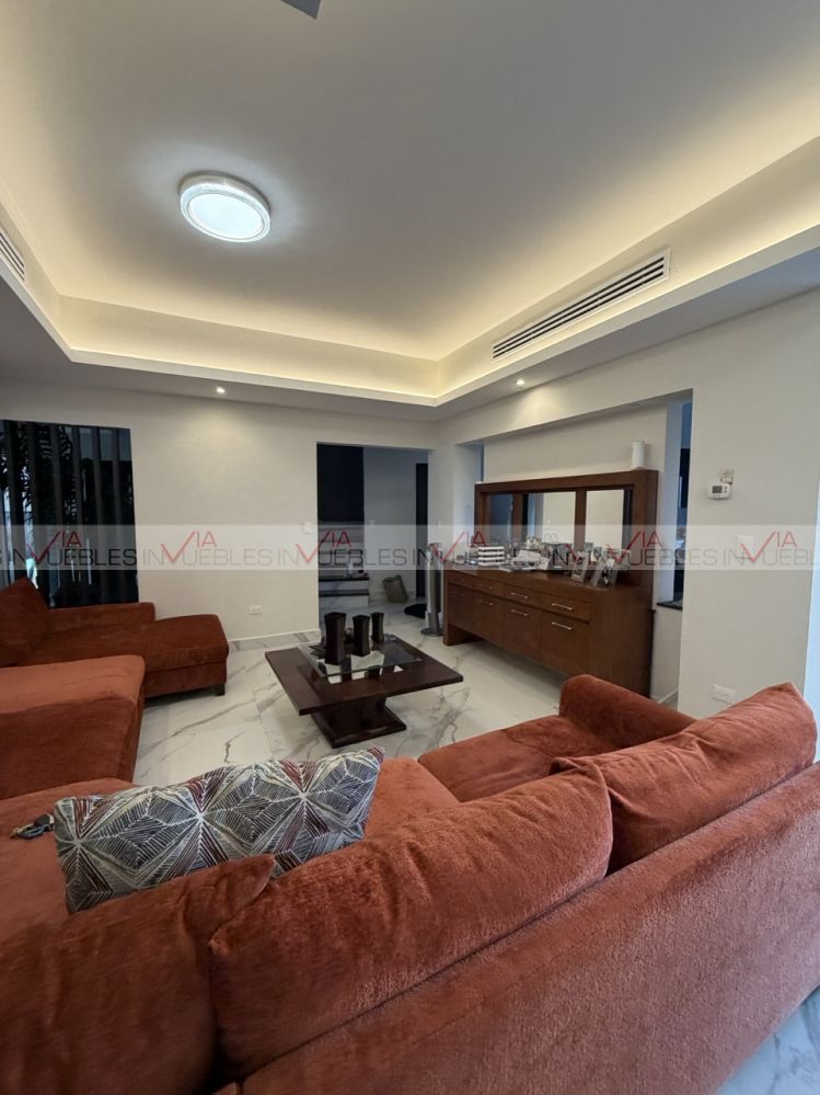 casa en venta en contry , en excelente ubicación cerca de av principales , comercios , tec de monterrey , en el sur de monterrey , la casa cuenta con 2 niveles , planta alta 3 rec todas con su walk in closet , baño completo , estancia , en plnata baja , recibidor , sala , comedor , cocina amplia equipada , y un estudio o 4 recamara con baño completo , alberca ,jardin , palapa ,paneles solares , clima central , cochera para 2 autos ; opcion a venta con muebles , lista para habitar
