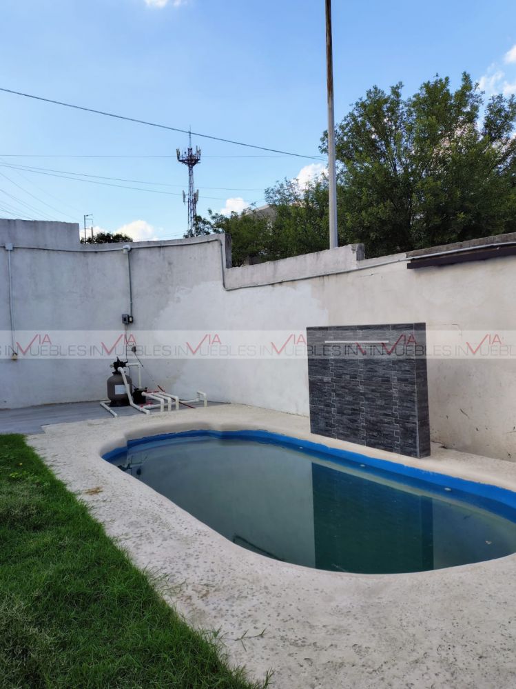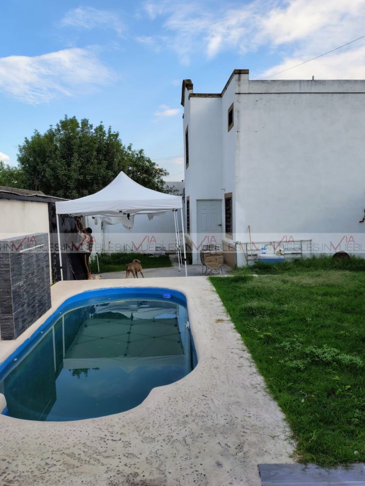 En la segunda planta se encuentran dos recamaras y un baño completo. Un hermoso patio con alberca, pasillo techado y lavandería y capacidad de estacionamiento amplio alrededor de la propiedad, a 1 minutos de centros comerciales, escuelas y avenidas principales.