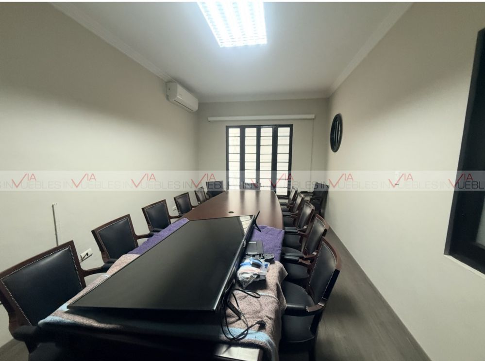 Planta baja: recepción, comedor, 2 privados, sala de juntas grande, 9 cajones de estacionamiento techados, 3 baños, cuarto con baño en la parte trasera.