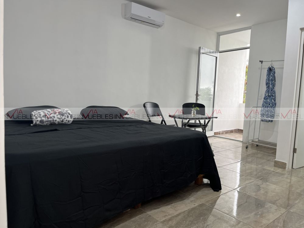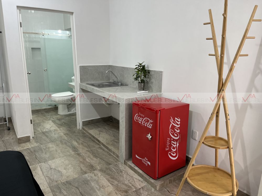Departamento Loft, en una excelente ubicación a 5 minutos del Centro de Monterrey, el departamento cuenta con cama King, mesa con dos sillas, baño completo, frigobar, microondas, parrilla, (en el precio servicios incluidos agua, luz, gas e internet) con terraza con bonita vista al cerro de la silla.