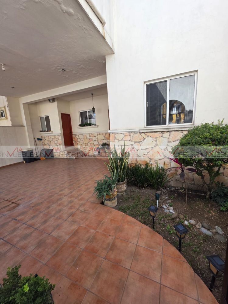 Bella Residencia con ubicación privilegiada en área de Cumbres, cuenta con dos plantas, PB cochera techada con portón eléctrico para hasta 3 autos, pórtico que nos recibe en entrada principal, recibidor 1/2 baño y un plus! oficina/recámara, así como sala, comedor cocina amplia equipada, alacena, lavandería techada con acceso independiente a cochera y jardín trasero el cual cuenta con pasto artificial y espacios cómodos para uso de área de asador.