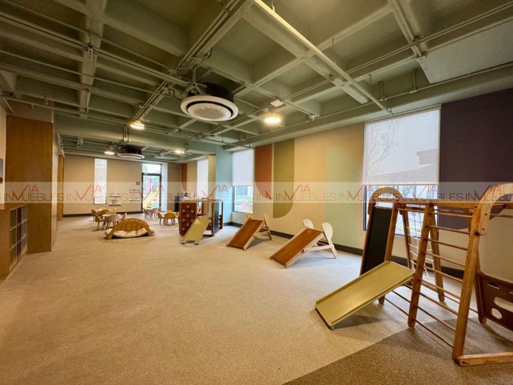 Dentro de sus amenidades destacan: alberca, gimnasio, terrazas, asadores, ludoteca, área de juegos infantiles, área para coworking, canchas deportivas, lounge, etc.