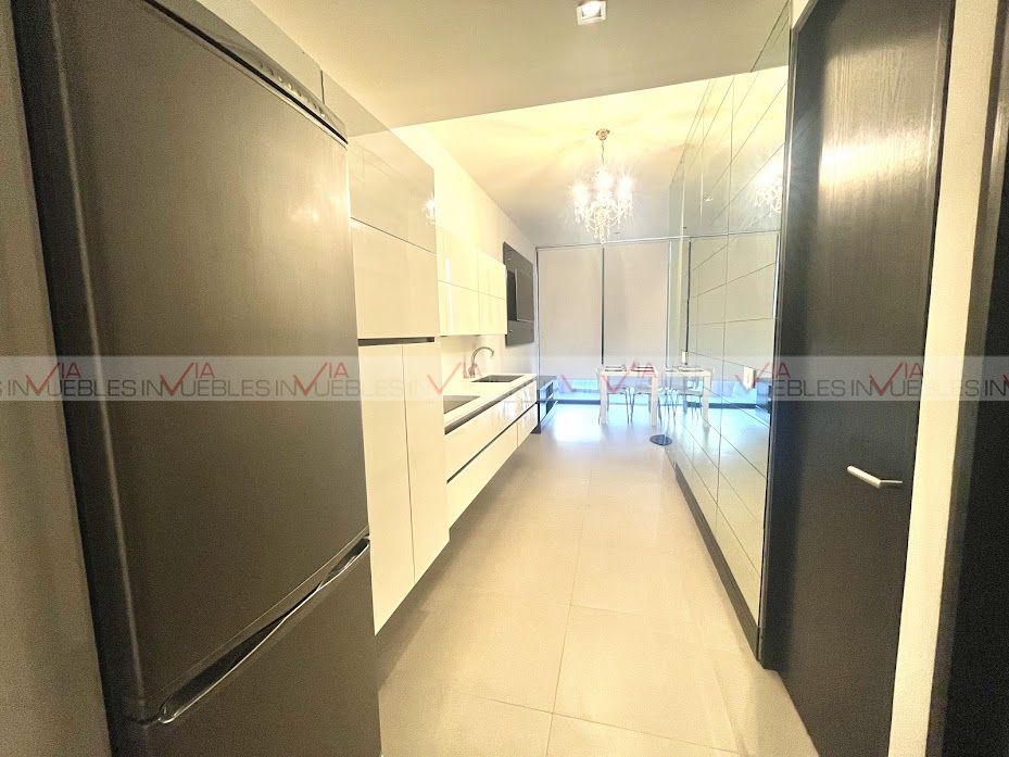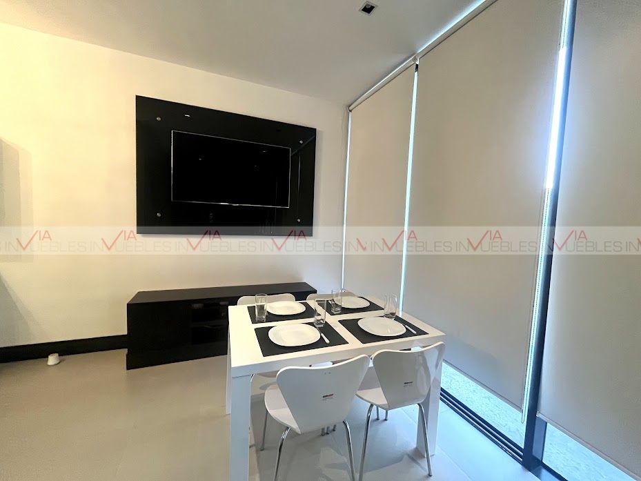 Departamento amueblado en renta en Torre Lovft con hermosas vistas a la Huasteca en la zona Valle Poniente. El departamento está muy bien decorado, cuenta con una recámara independiente, cocina integral, sala, comedor, baño completo y balcón. Cuenta con un cajón de estacionamiento, ideal para un ejecutivo.
